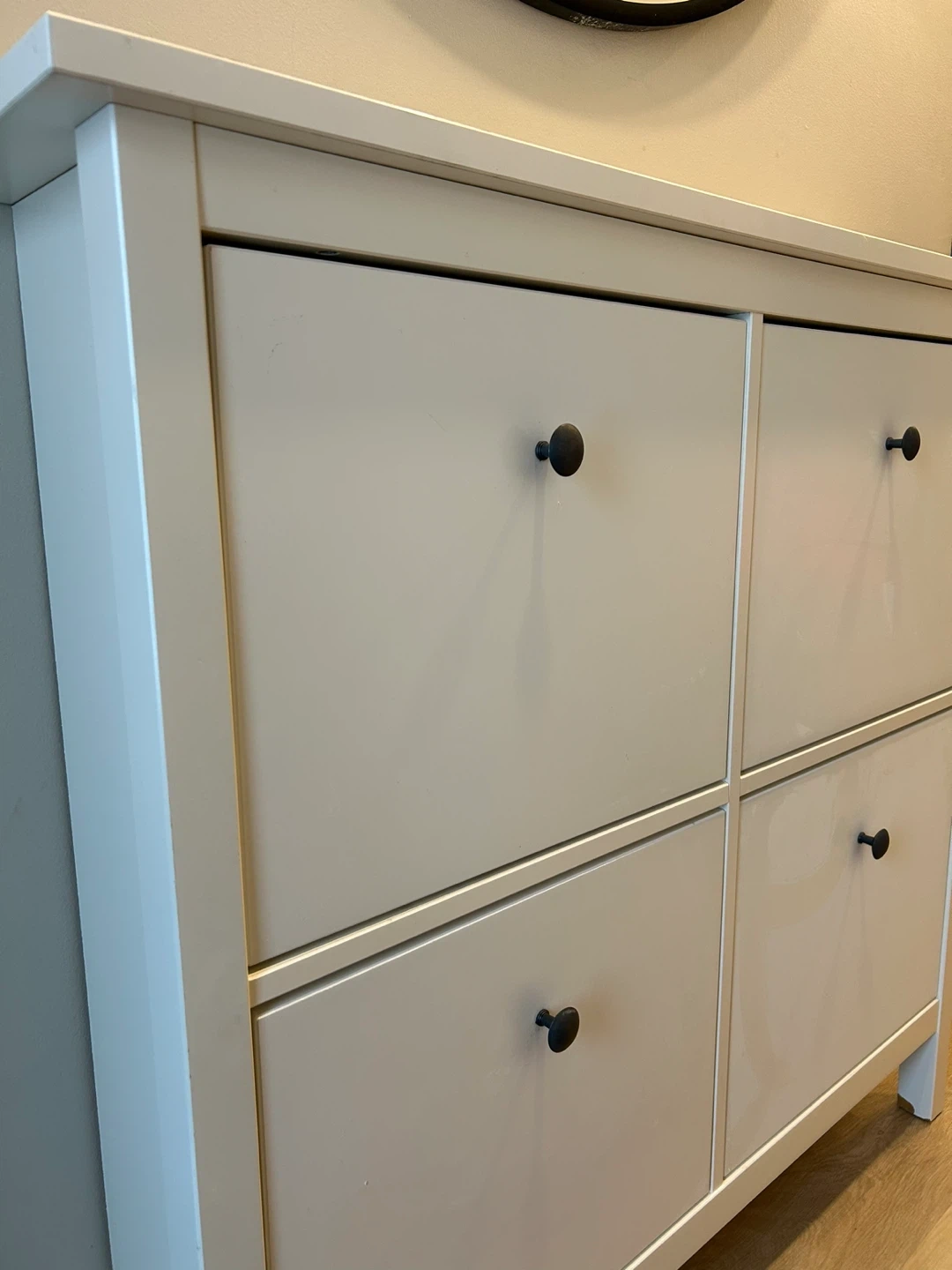 Selling a white IKEA Hemnes shoe cabinet. It has a scratch at the top and a chip on one leg, but otherwise it's in great condition and works fine perfectly. Great for keeping your entryway organized! Sell due to moving.
