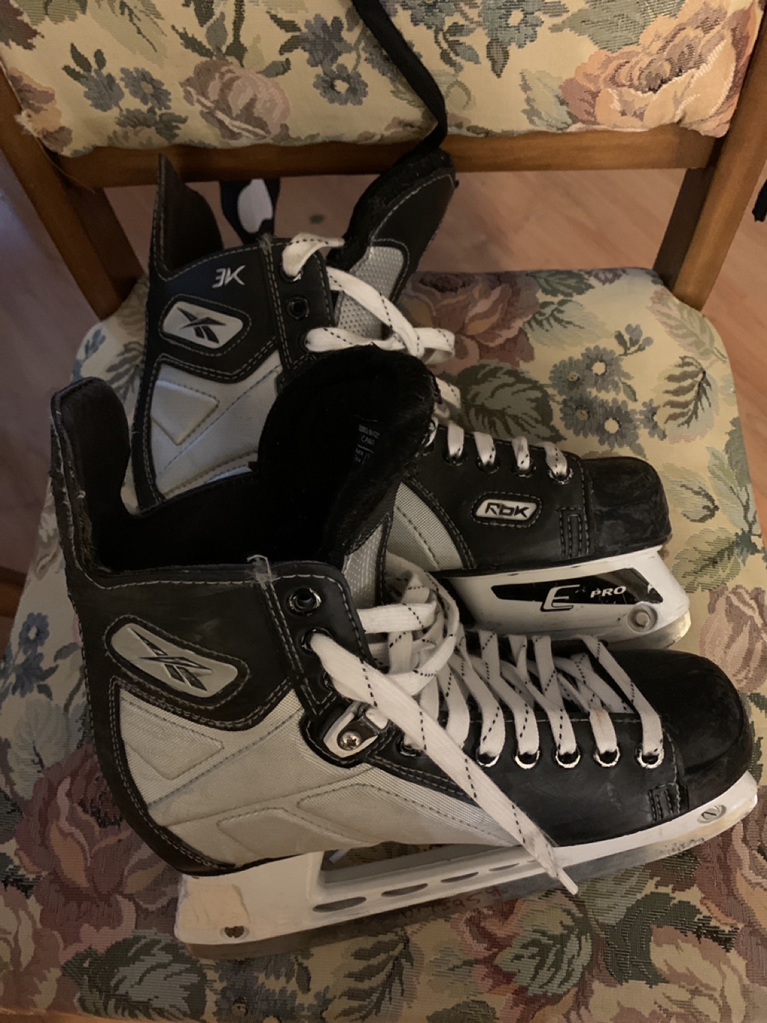 Selling a pair of Rbk hockey skates in US size 6.5. They are designed in Canada. Great for getting out on the ice!
