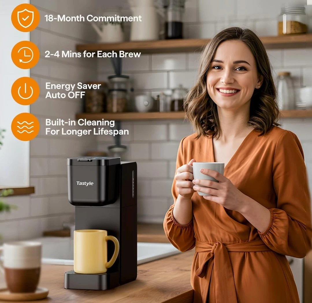 I'm selling a Tastyle single serve coffee maker! It's compatible with K-cup pods, grounds, and tea leaves. It can brew sizes from 6-16 oz. Enjoy 4 brewing styles: Over Ice Tea, Over Ice Coffee, Classic Coffee, and Strong Coffee. It also includes recipes!