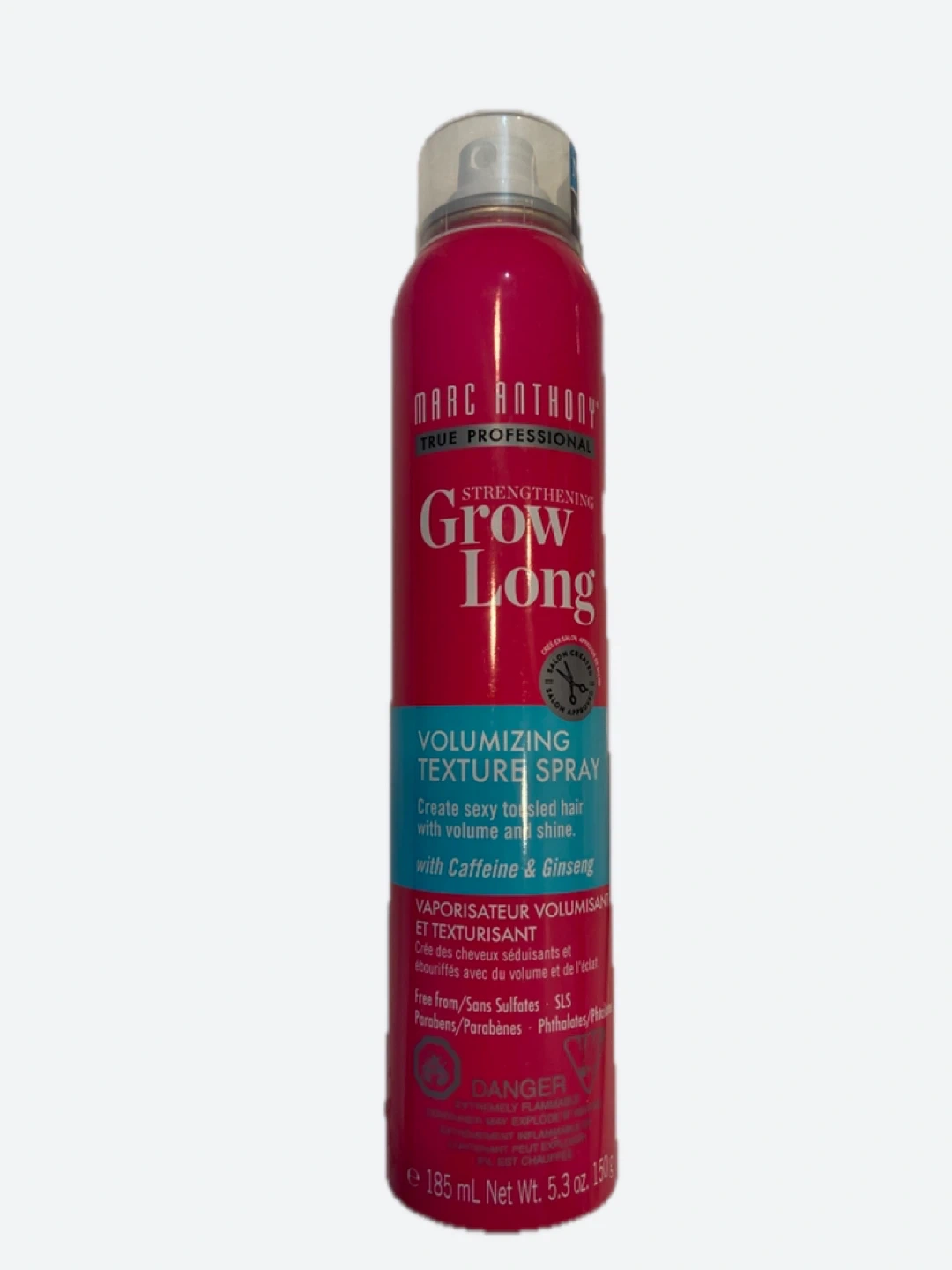 1000+Get ready to create sexy, tousled hair with this Marc Anthony Grow Long Volumizing Texture Spray! It's designed to add volume and shine, and it's formulated with caffeine and ginseng. It's also free from sulfates, parabens, and phthalates. Net content is 185 mL/5.3 oz Feels about 3/4 full