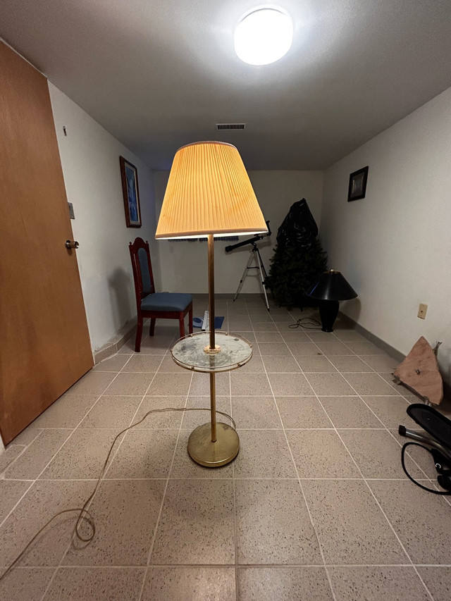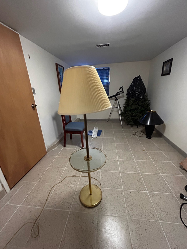 Brighten up your space with this stylish floor lamp, featuring a built-in side table for added convenience! This lamp is in used condition, perfect for adding a touch of functional elegance to any room. * Type: Floor Lamp * Features: Side Table Looking to add a touch of light to your life? This lamp is just the thing. If the ad is up, it's still available! Cash only.
