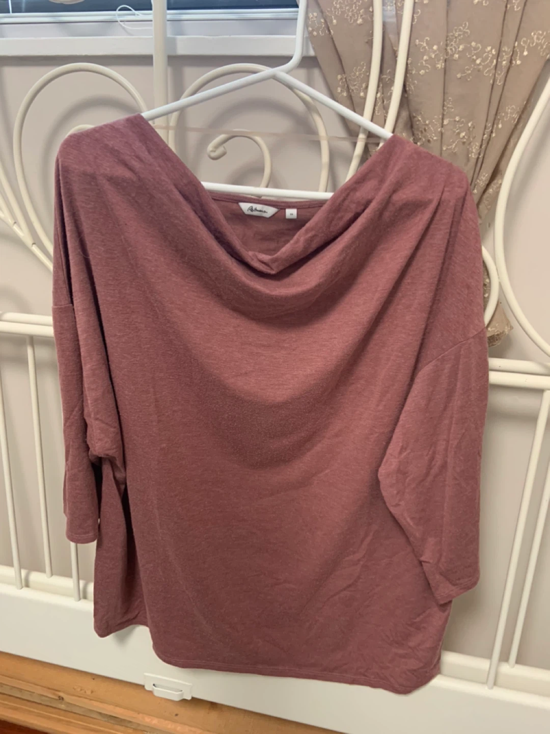 Giving away a Reitmans top in size 3X. It's a lovely mauve colour, cowel neck lightweight 3/4 sleeve top. Perfect fall. Add a touch of warmth to your wardrobe! For FREE!