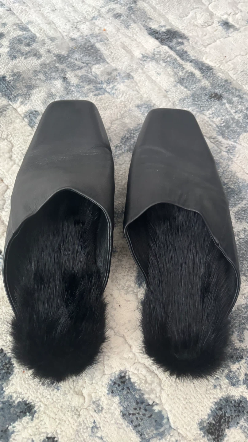 Black Leather & Fur Mules