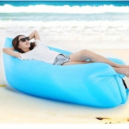1pc Inflatable Lounger, Air Mattress Sofa, hammock, Portable Folding Single Lounger for Camping, Music Festivals, Polyester Fabric with Water Proof & Anti-Air Leaking Design, Rectangular Shape, Includes Stuff Sack