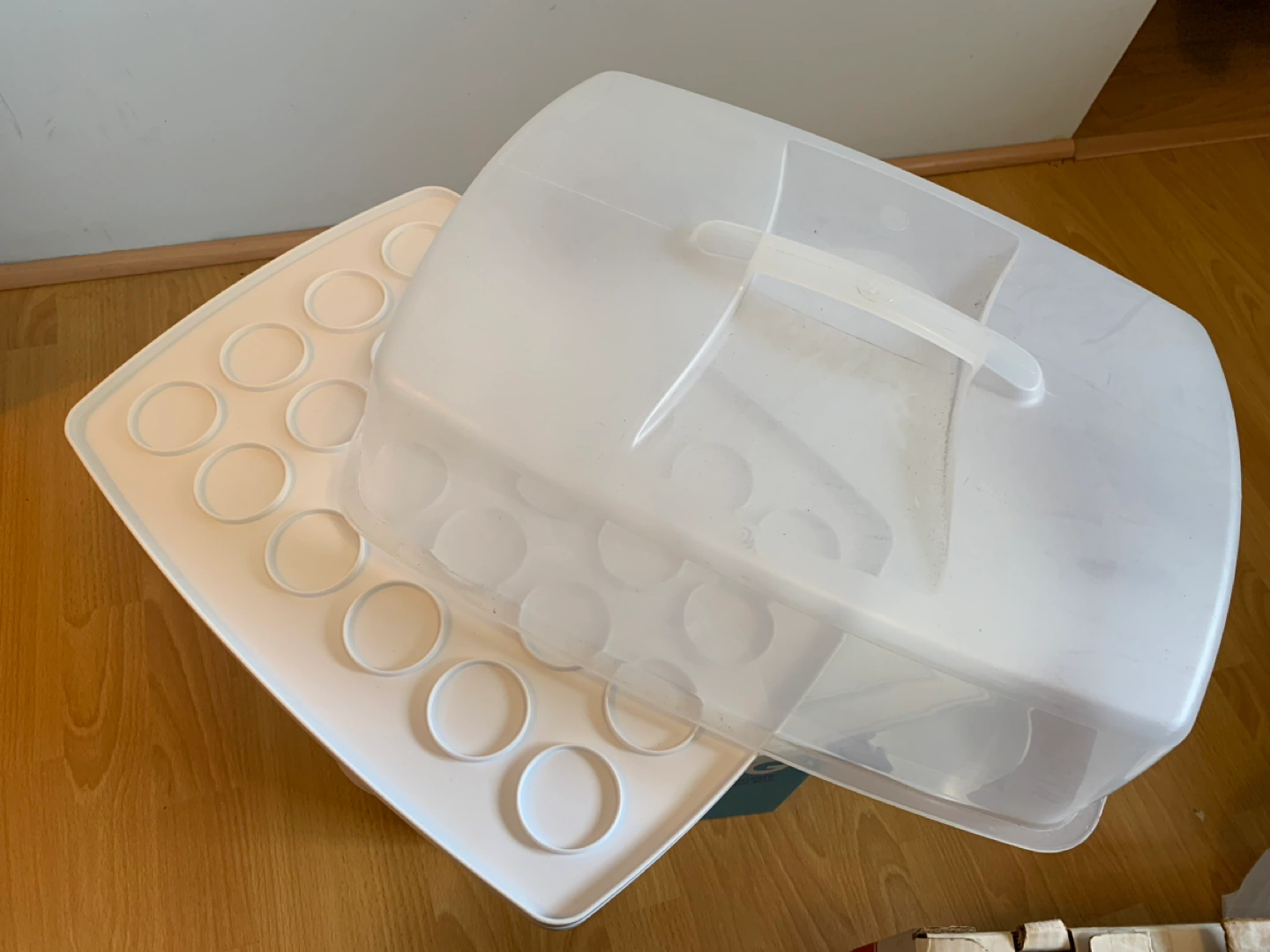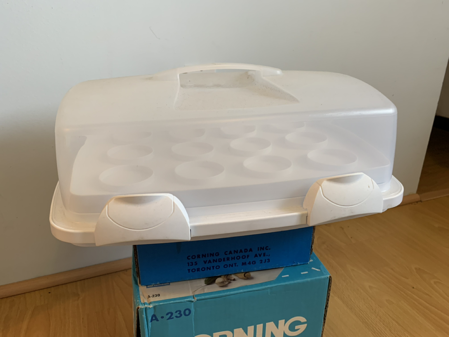 3-in-1 caddy with reversible tray for cupcakes and mini muffins and completely removable for cakes. Secure locking latches to ensure safe transport of your baked goods! Used once or twice. Retails for $34.99 https://www.canadiantire.ca/en/pdp/wilton-3-in-1-plastic-caddy-1424340p.html?&&&&gbraid=0AAAAADojZpgyie_O1JfbgLmTPn6CVrLFM&gclid=Cj0KCQjw98ujBhCgARIsAD7QeAiASJfBTL0uc6XedyX10HtSYnOGwTou1ScY2dr-GTjFP_SB-3RRYooaAhMQEALw_wcB&gclsrc=aw.ds#store=601