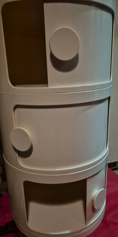 Selling a Componibili 3-tier storage unit by Kartell! This stylish and functional piece is perfect for adding storage to any room. It's a versatile design that can be used in various settings. The unit features three compartments for organization and a sleek, modern look. It's in great condition and ready for a new home!