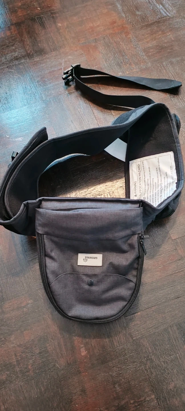 Selling a Grownsy ergonomic hip seat baby carrier in grey! It's designed with multiple pockets and an adjustable extended waistband, suitable for newborns and toddlers up to 50 lbs. It offers 4 carrying positions and has a large capacity with multiple storage options for easy outings. Originally bought for $82.39