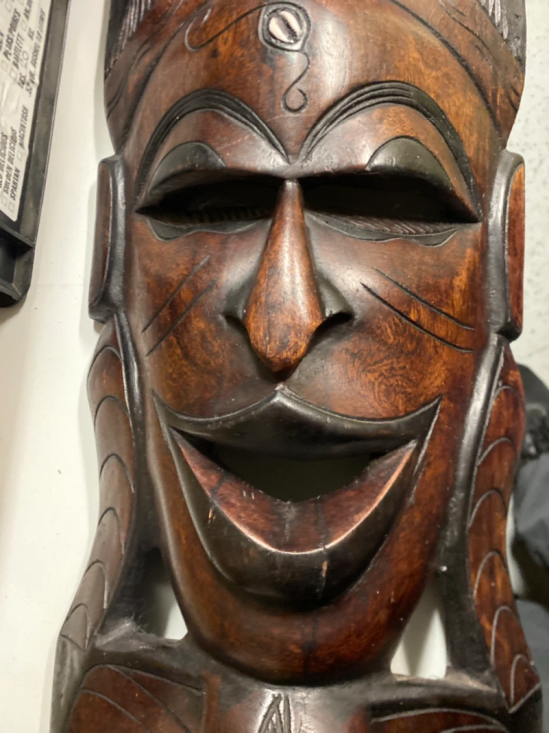 I'm selling a beautiful large vintage hand-carved wooden mask. It has a unique design and would make a great addition to any collection or as a decorative piece for your home. It is in good condition. It’s beautiful and a true work of art.