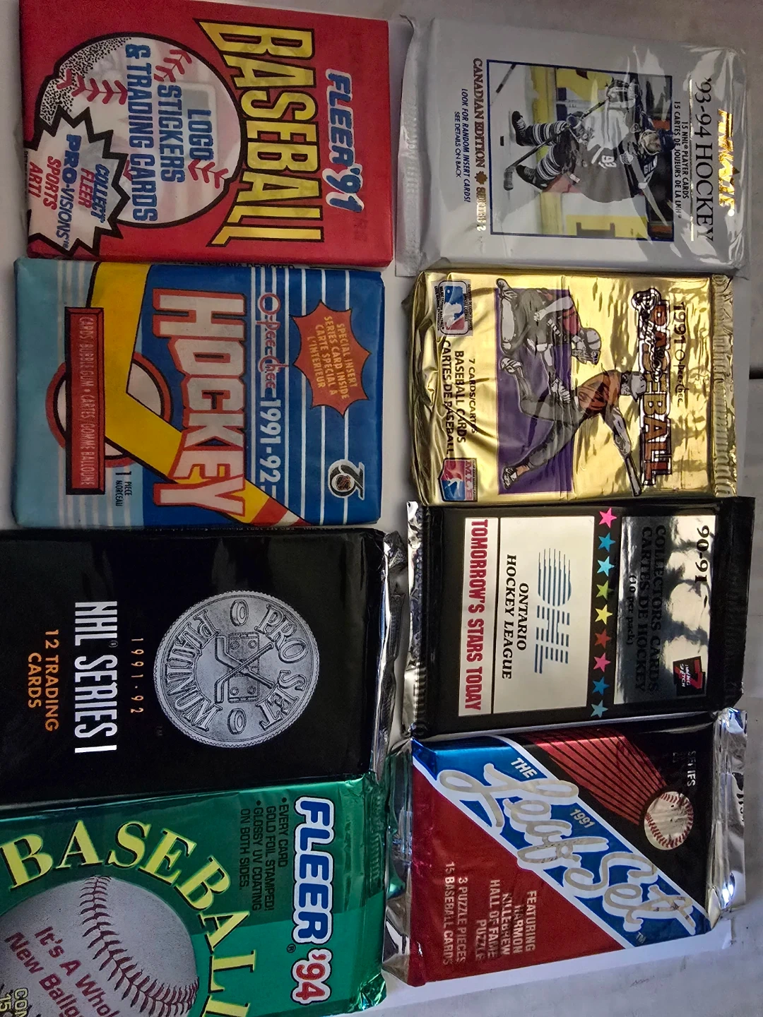 26Selling a collection of vintage hockey and baseball trading card packs from the early 1990s. Includes brands like Fleer, O-Pee-Chee, and Pro Set. Great for collectors!
