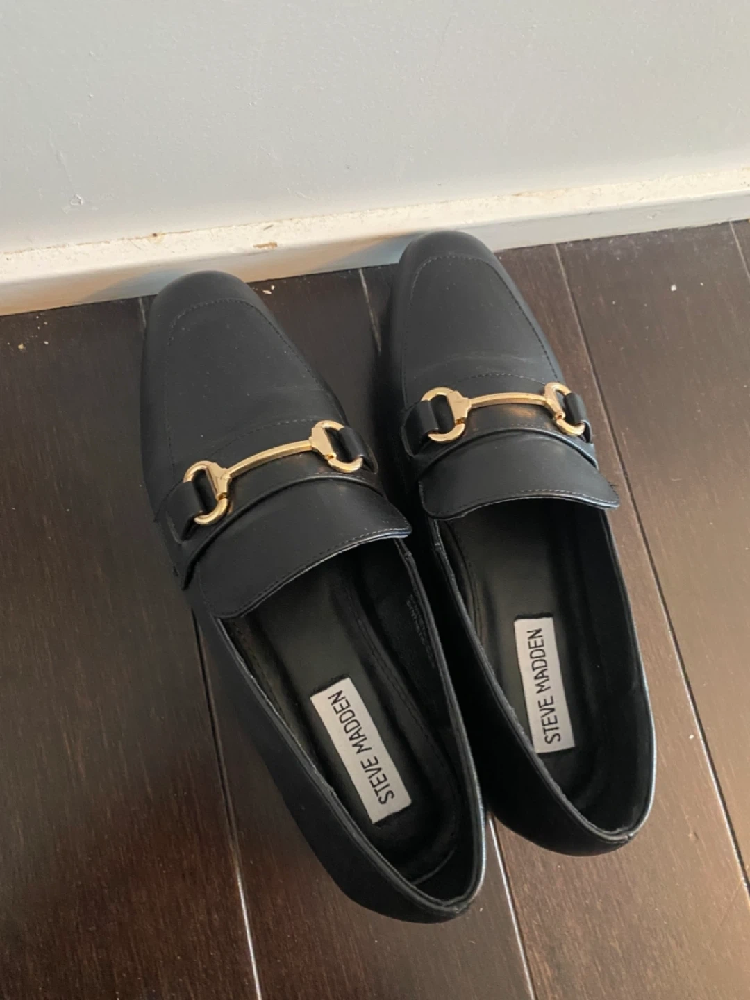 Selling a pair of Steve Madden black loafers in size 6. They are in good condition and would be great for work or casual wear!