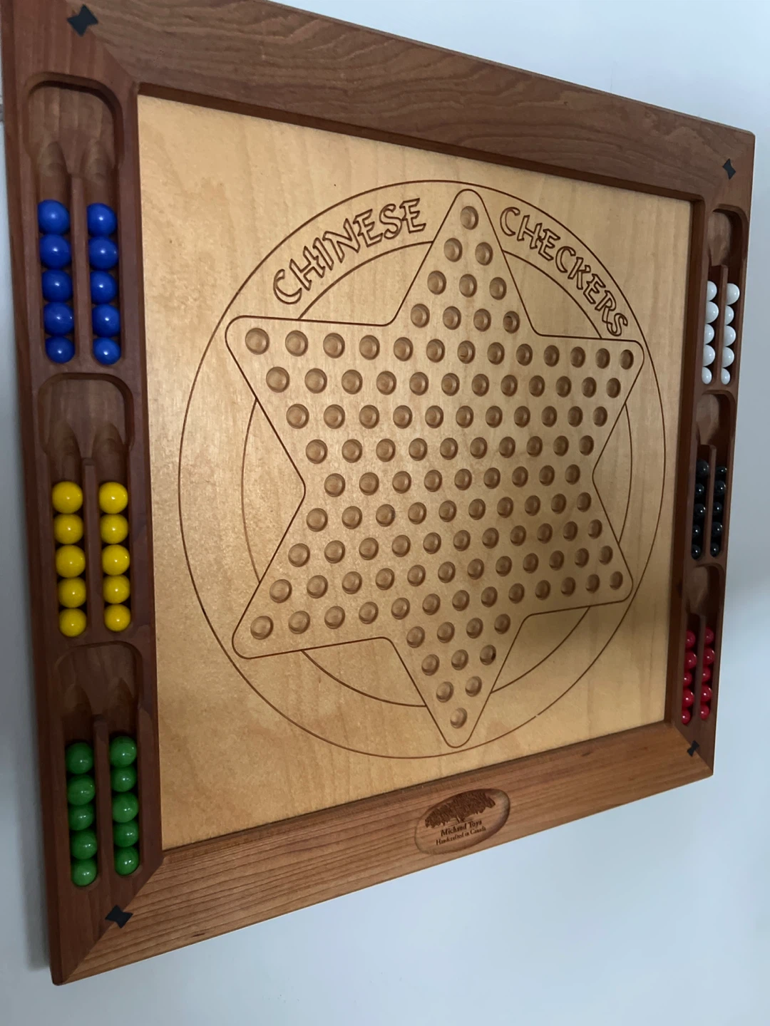 Selling a beautiful, handcrafted Chinese Checkers game board. It's in great shape and includes all the marbles. Perfect for family game nights!