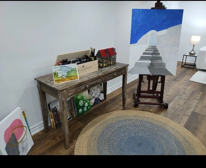 Assorted Home Decor Items Canvas / Wine Rack / Desk
