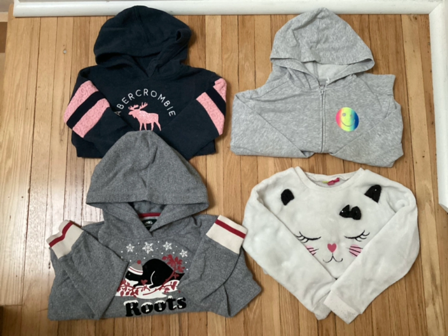 Girls size 7 clothes from Gap Kids, Children’s Place and H&M. Roots sweater and the cutest Cynthia Rowley dress for special occasions. Includes dresses, pants, hoodies, long sleeves, t shirts and pjs. All clothes in great condition. 40 pieces in total.