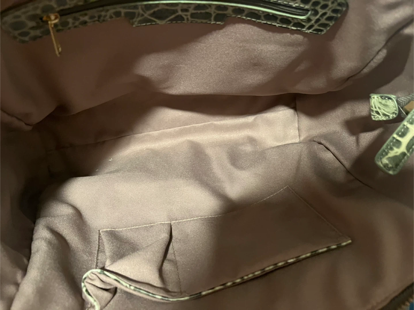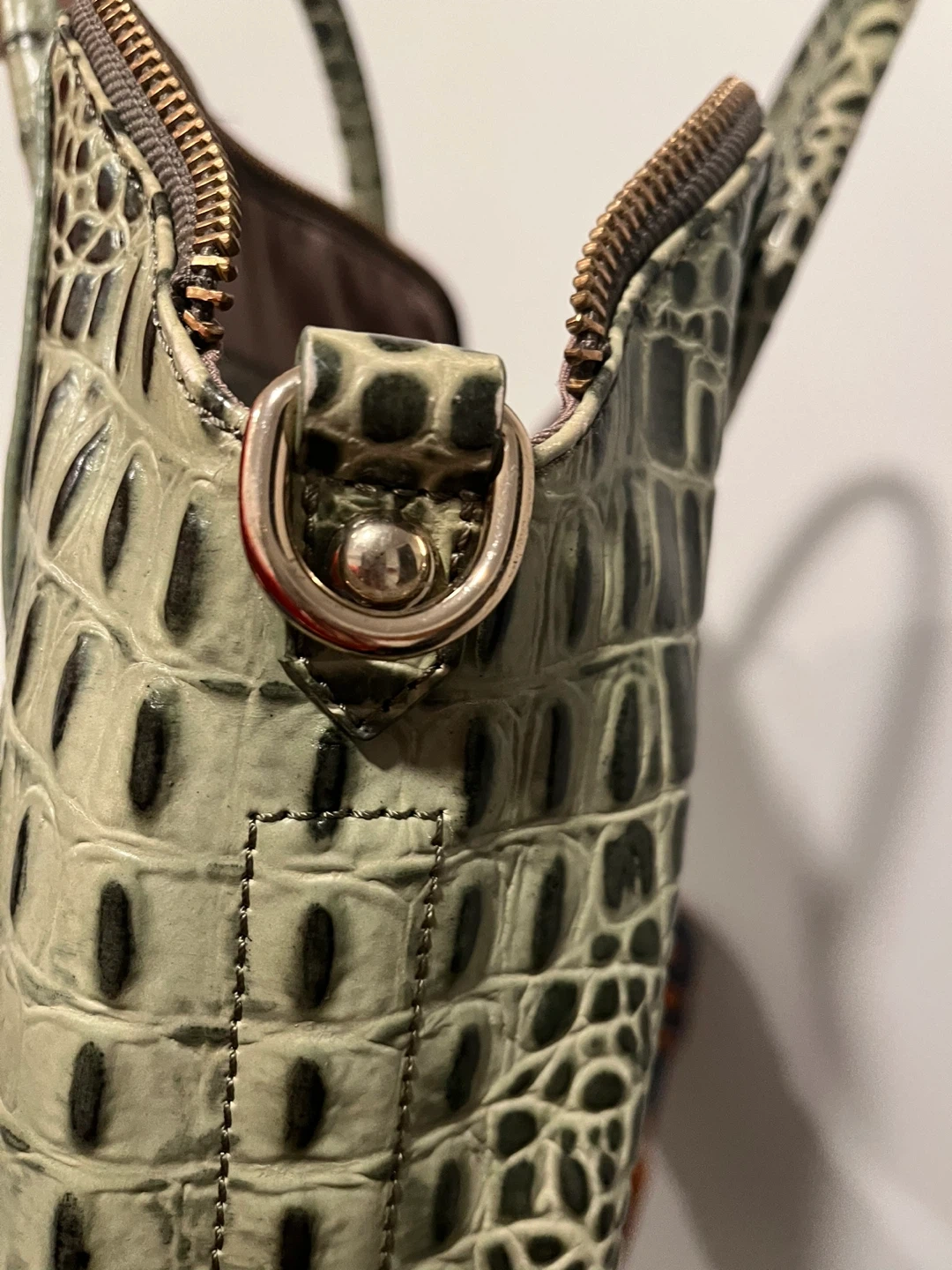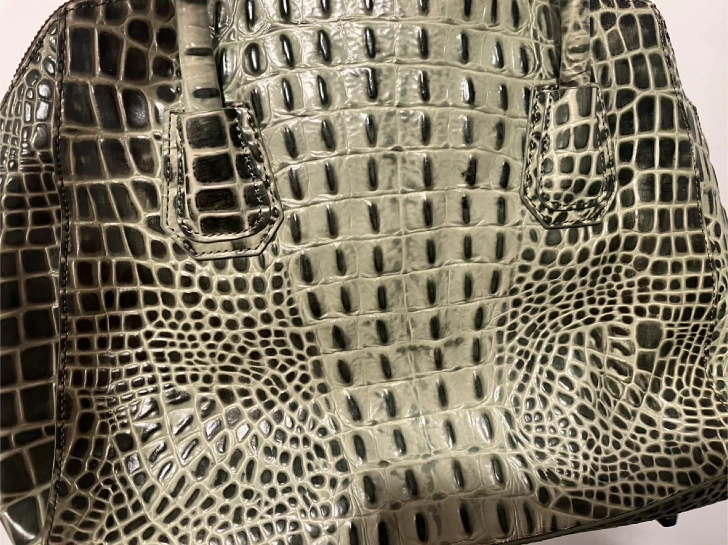 Here's a Danier bag made with genuine leather! It has a croc-embossed pattern, adding a unique touch to the design.