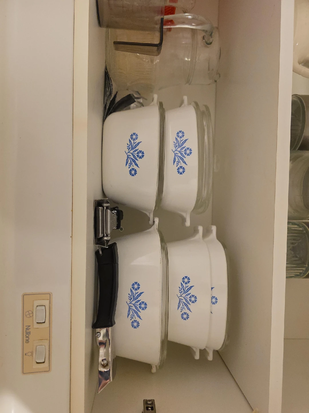 Selling a set of vintage Corning Ware casserole dishes. They feature the classic blue floral pattern and are in great shape for their age. Perfect for adding a touch of retro charm to your kitchen!