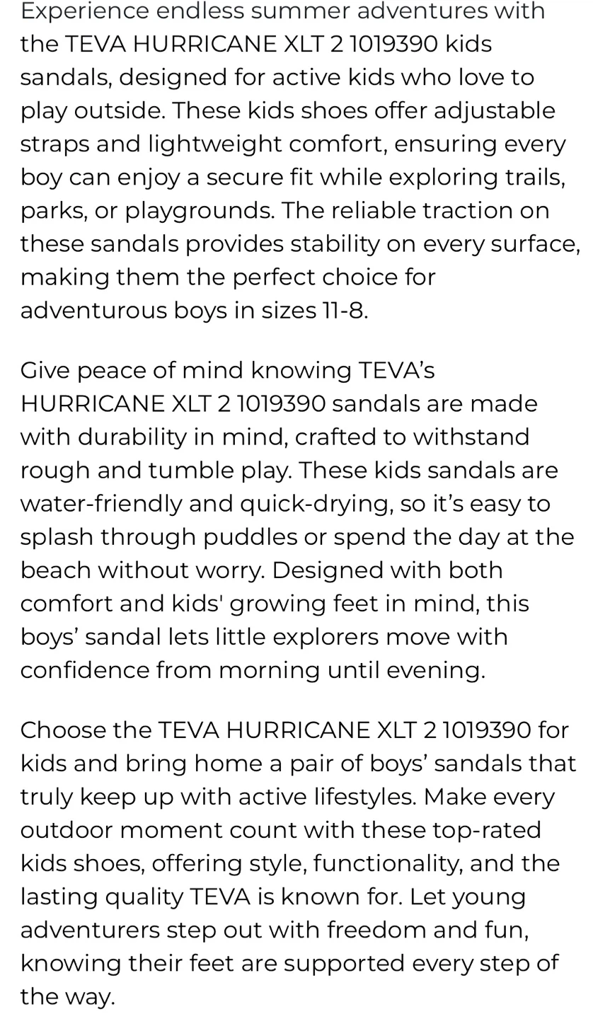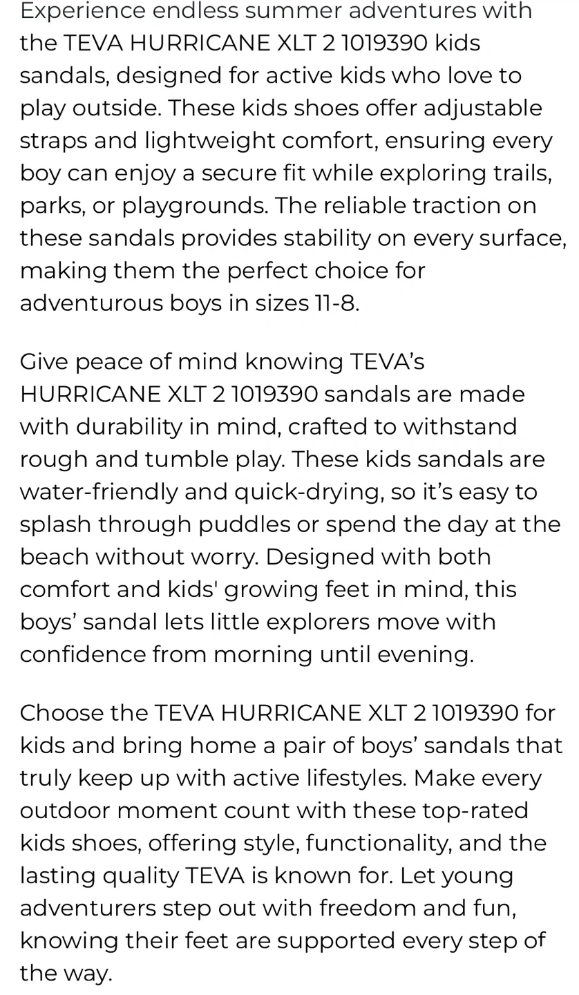 In gently used, like new condition, these Teva Hurricane XLT 2 sandals are perfect for kids on the go — ideal for vacations, family trips, and outdoor adventures.