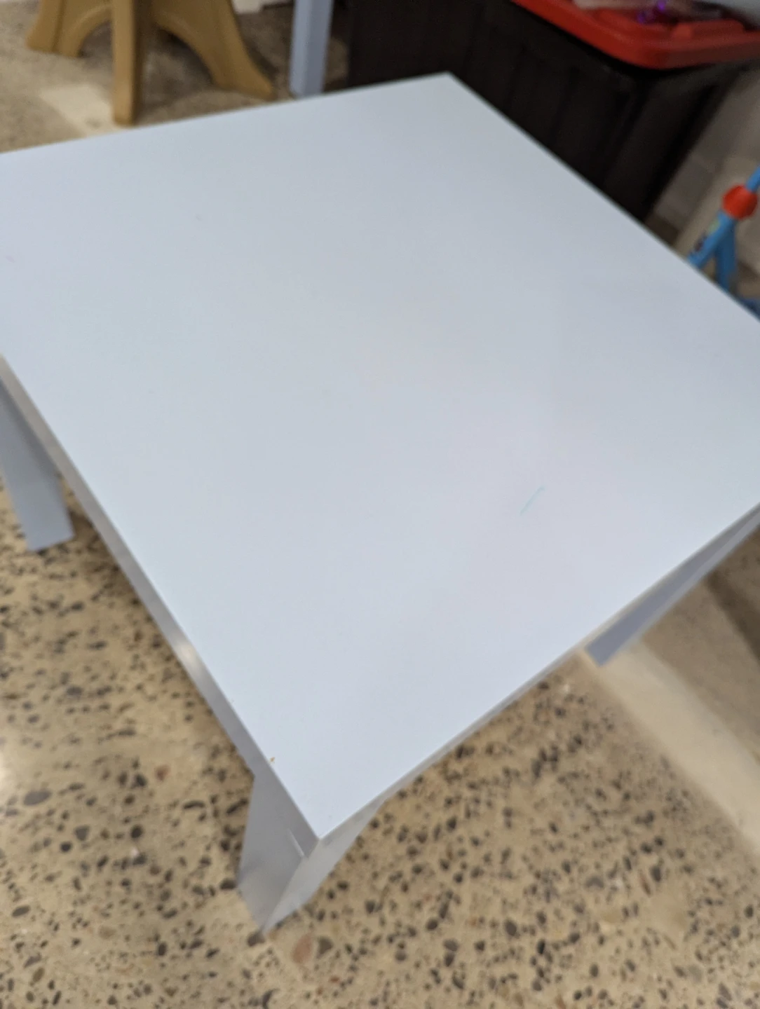 Selling a gently used IKEA Lätt children's table in baby blue! It's perfect for arts and crafts, snack time, or just a fun place for the little ones to play. It's in good condition and ready for a new home.