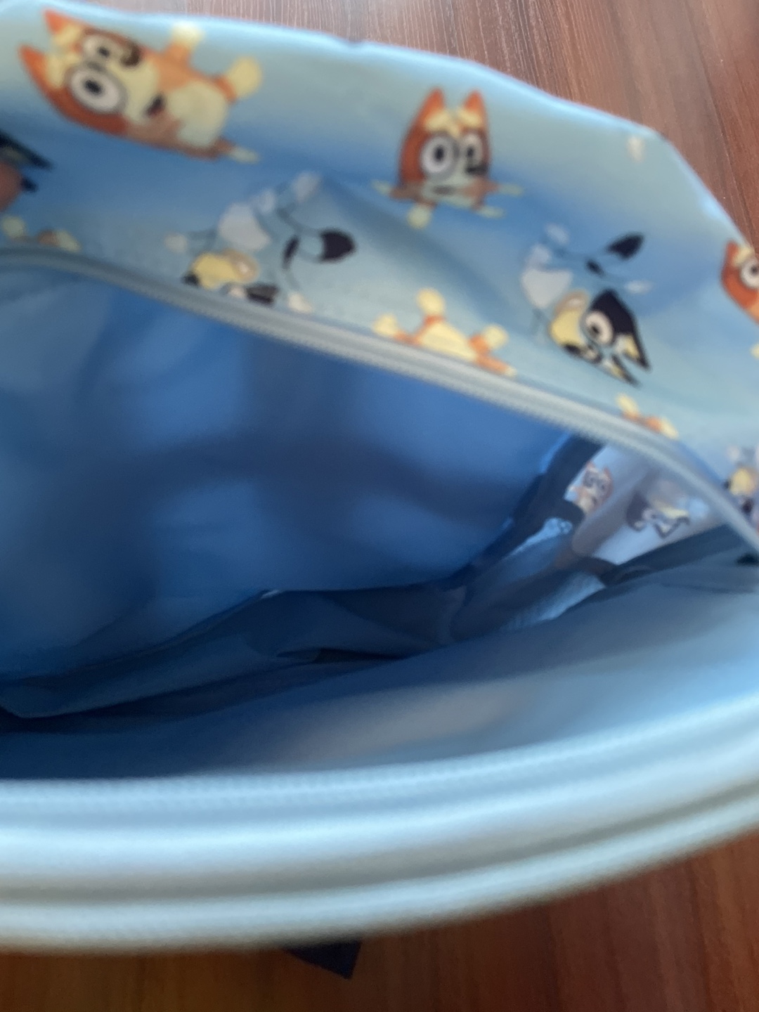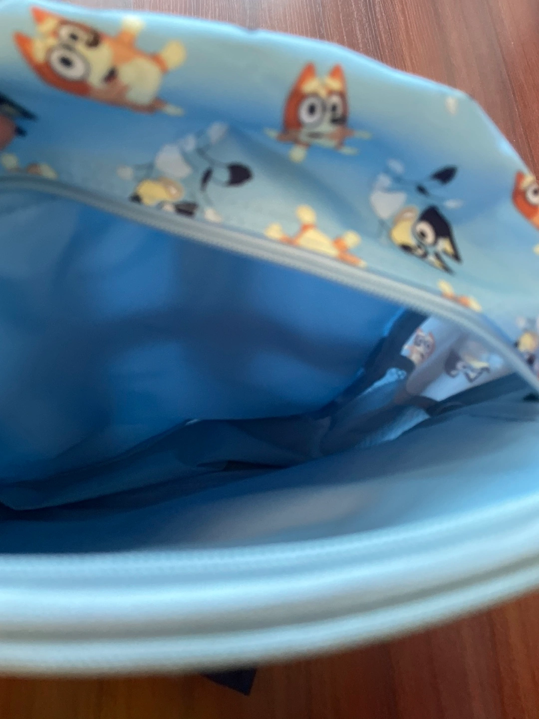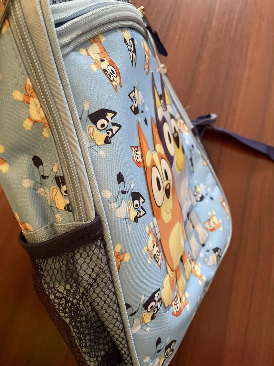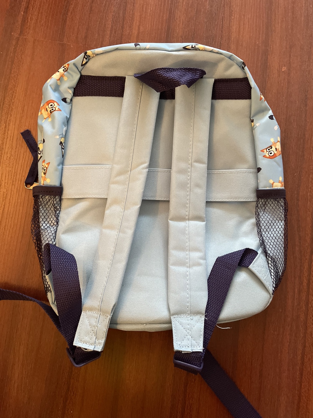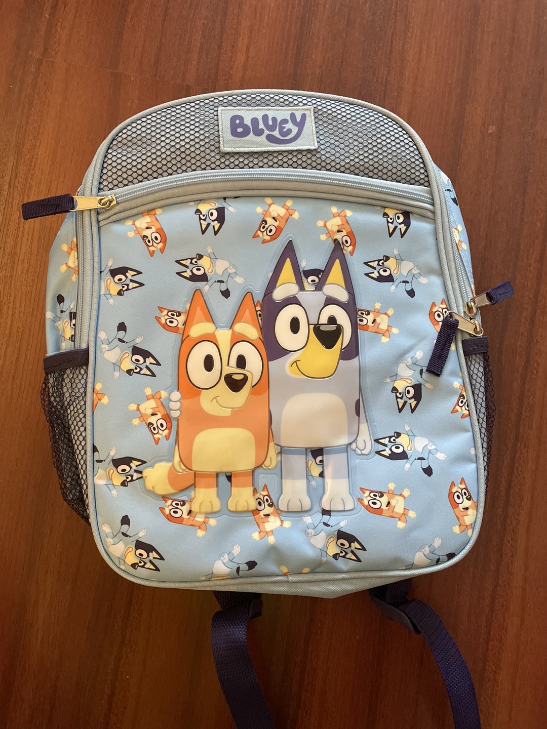 New without tags Bluey backpack. Mesh side pockets and two zipper compartments. Measures about 35cm long and 26cm wide.
