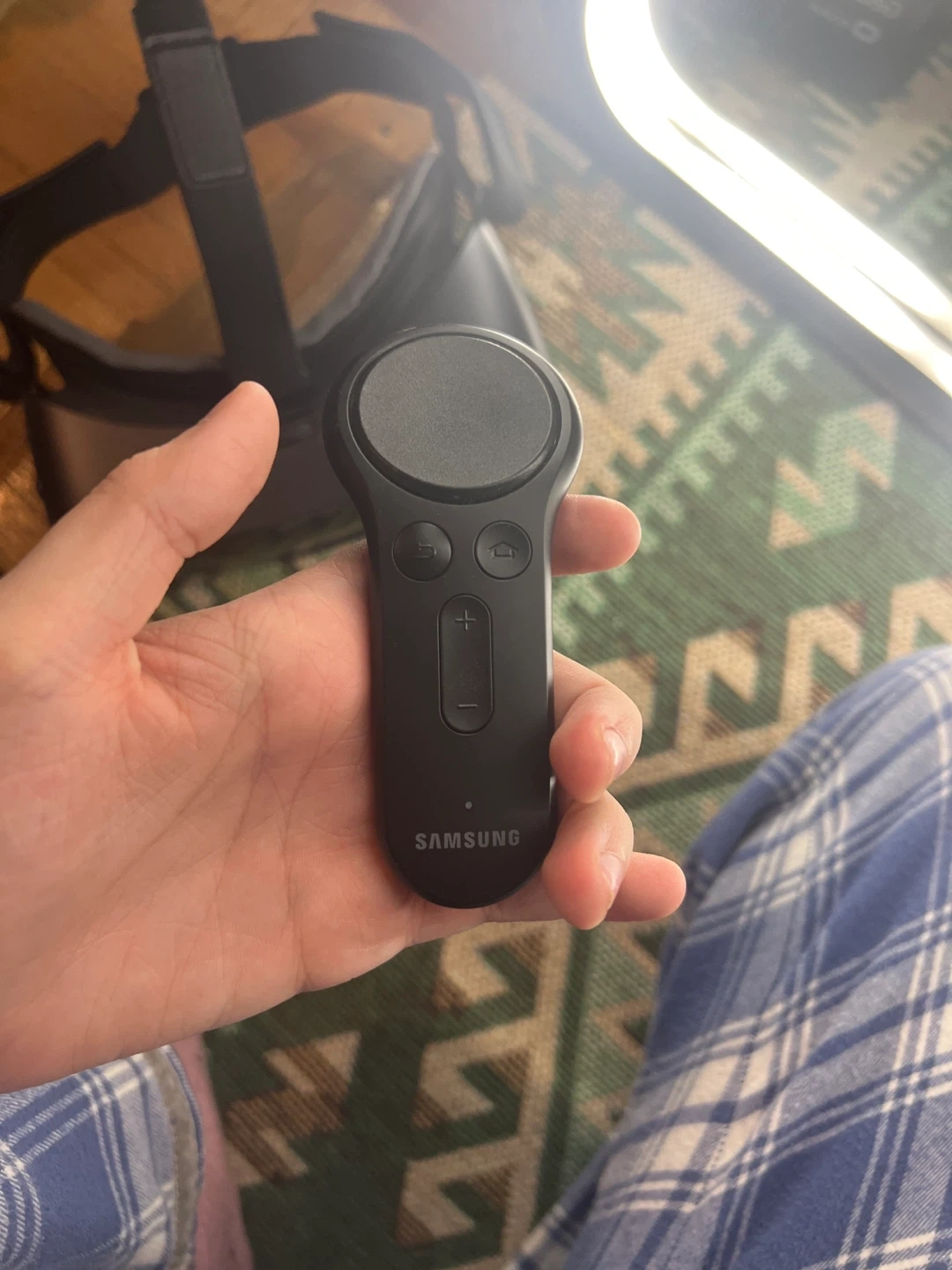 Selling a Samsung Gear VR headset with its controller. It's in great condition and ready for a new home! This VR headset offers immersive experiences, perfect for gaming and exploring virtual worlds. Comes with the headset and controller.