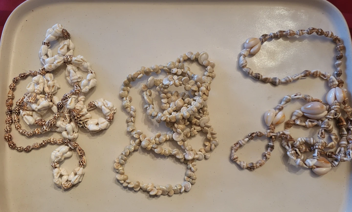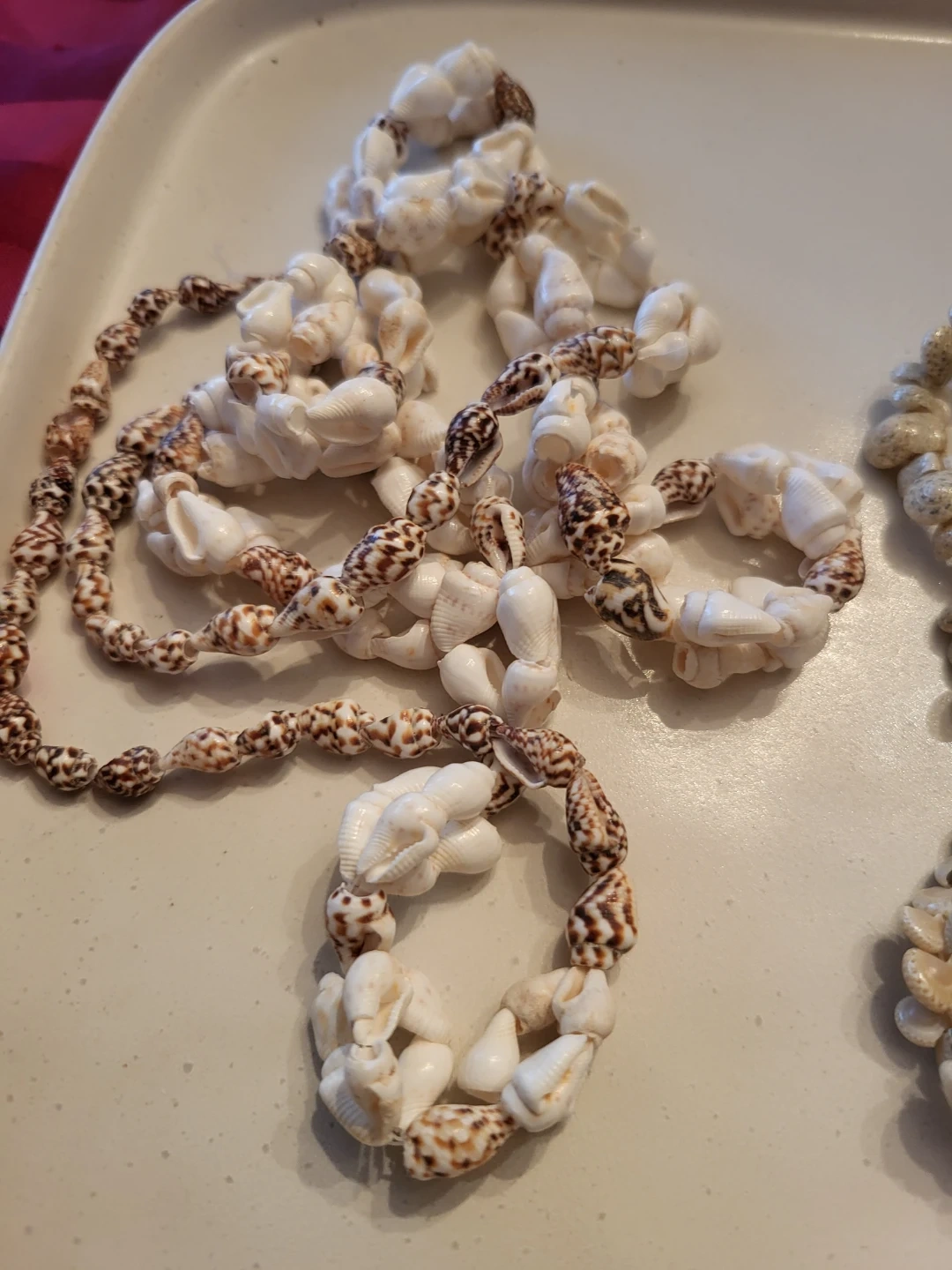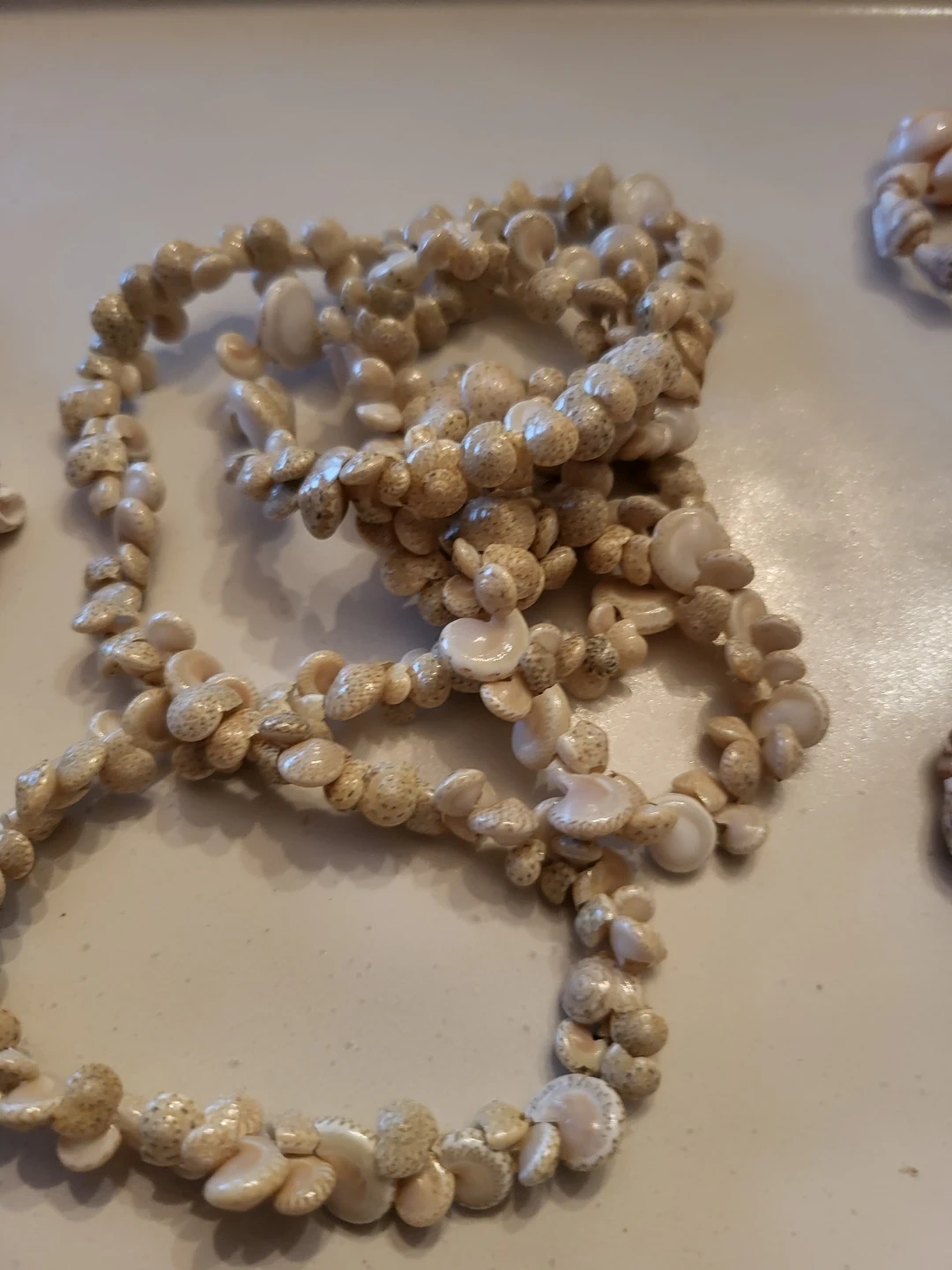 134Here are some handmade shell bead necklaces. They're in great condition and ready for a new home! $5 each PU on Worthington off St Annes or Whyte Ridge.