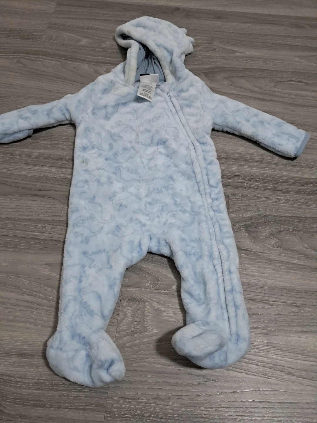 A cozy baby blue fleece onesie with a cute dinosaur pattern! Perfect for keeping your little one warm and snug. It has a convenient zipper closure for easy changes.