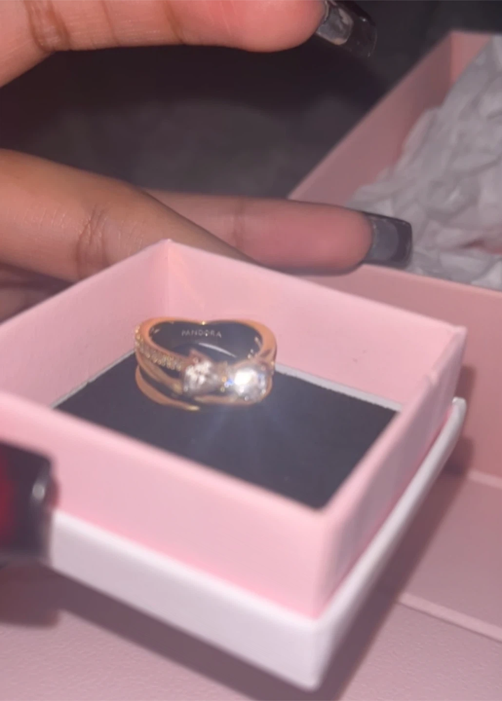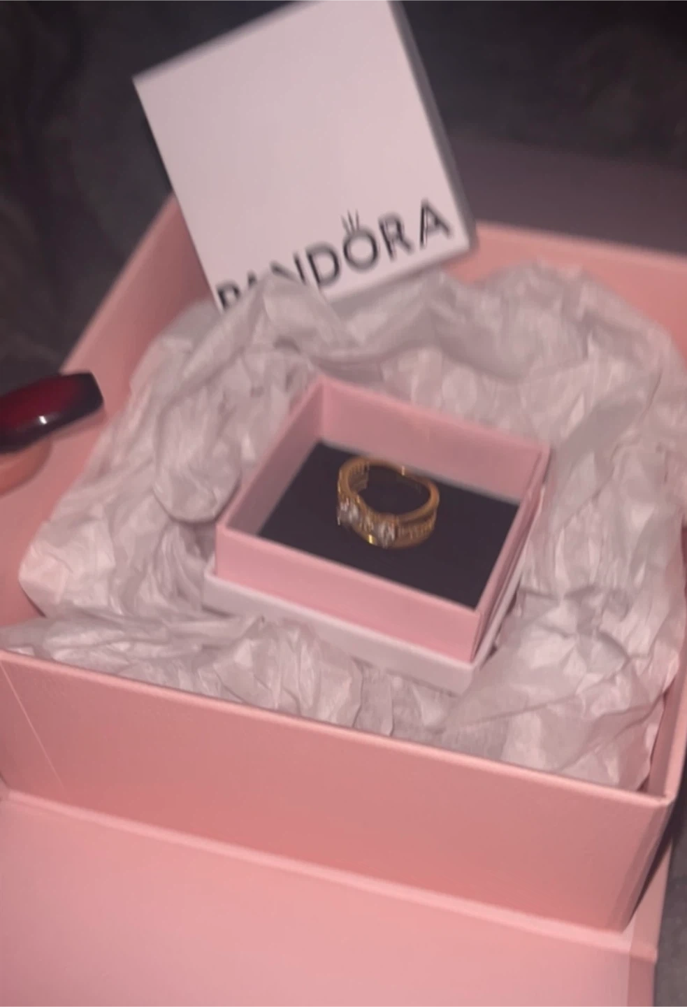Selling a beautiful gold Pandora ring! It comes with the original box, perfect for gifting or keeping it safe. It's in great condition and ready for a new home