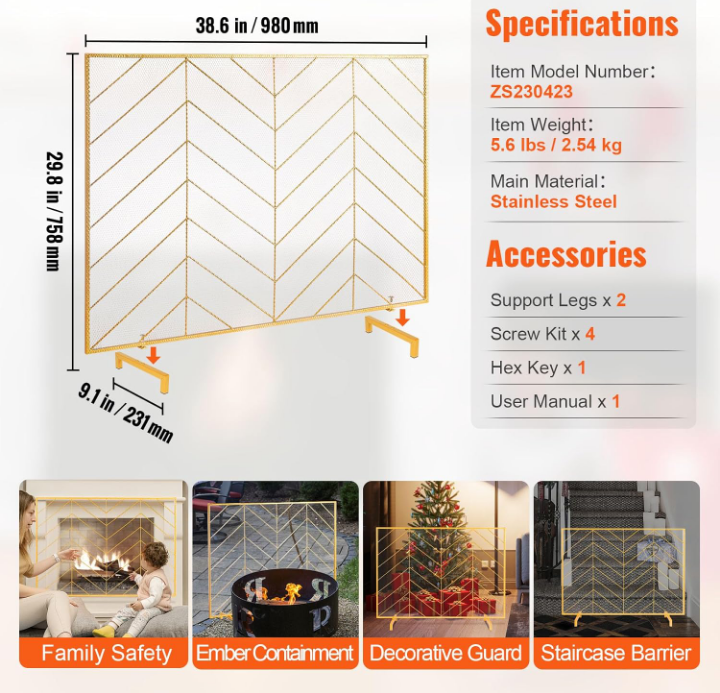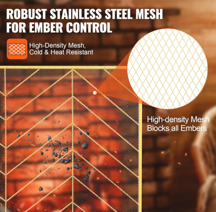 VEVOR fireplace screen, modern single panel design in gold.