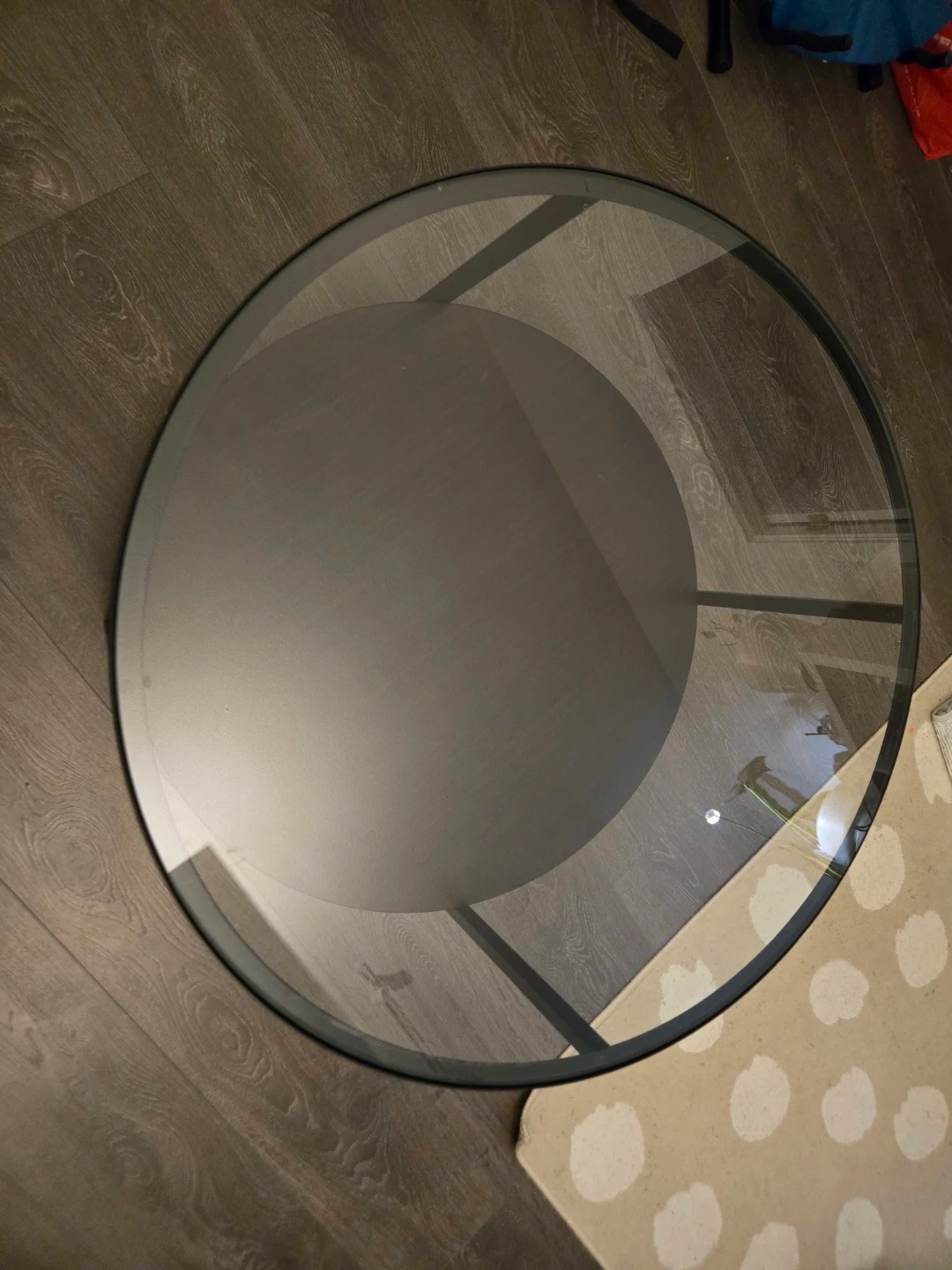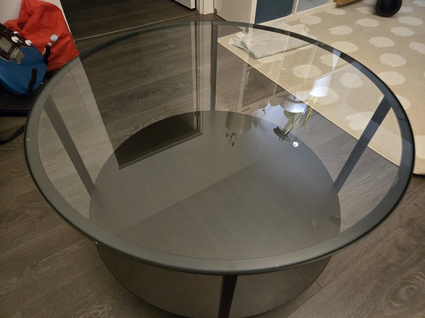 Selling a round glass coffee table that would look great in any living room! It's in good condition and has a sleek, modern design. The table features a glass top and a sturdy base. Perfect for adding a touch of elegance to your home decor