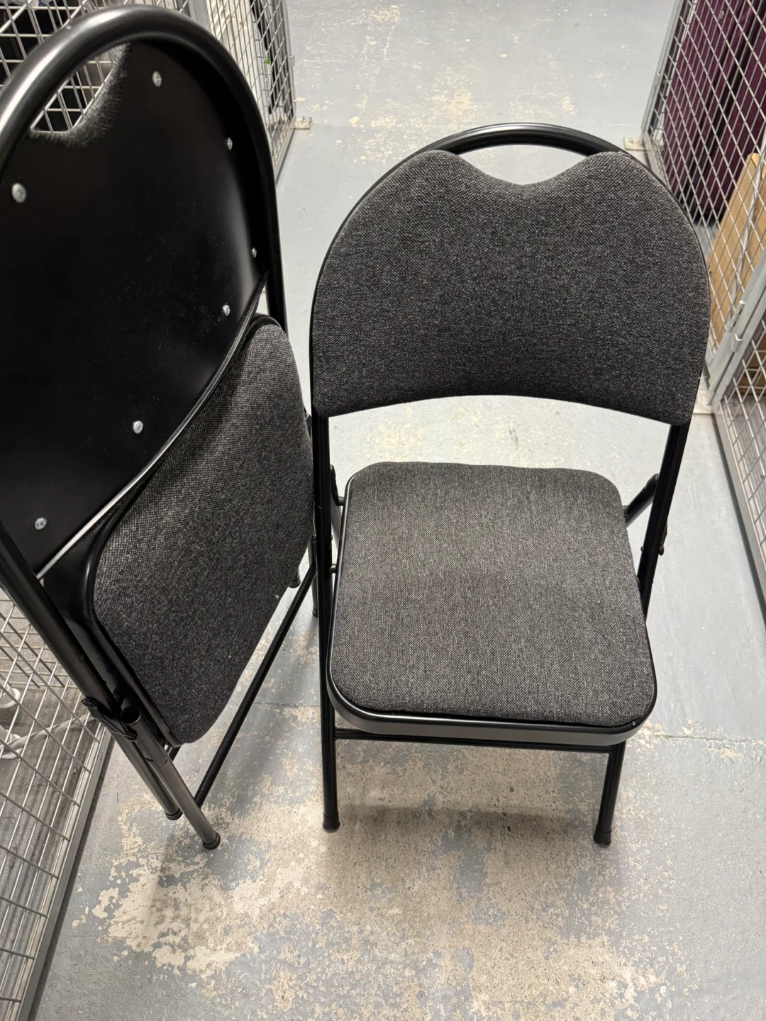 Selling 2 folding chair in black. It's in great shape and perfect for extra seating when you have guests over or for any event where you need a portable chair. Easy to fold and store when not in use!