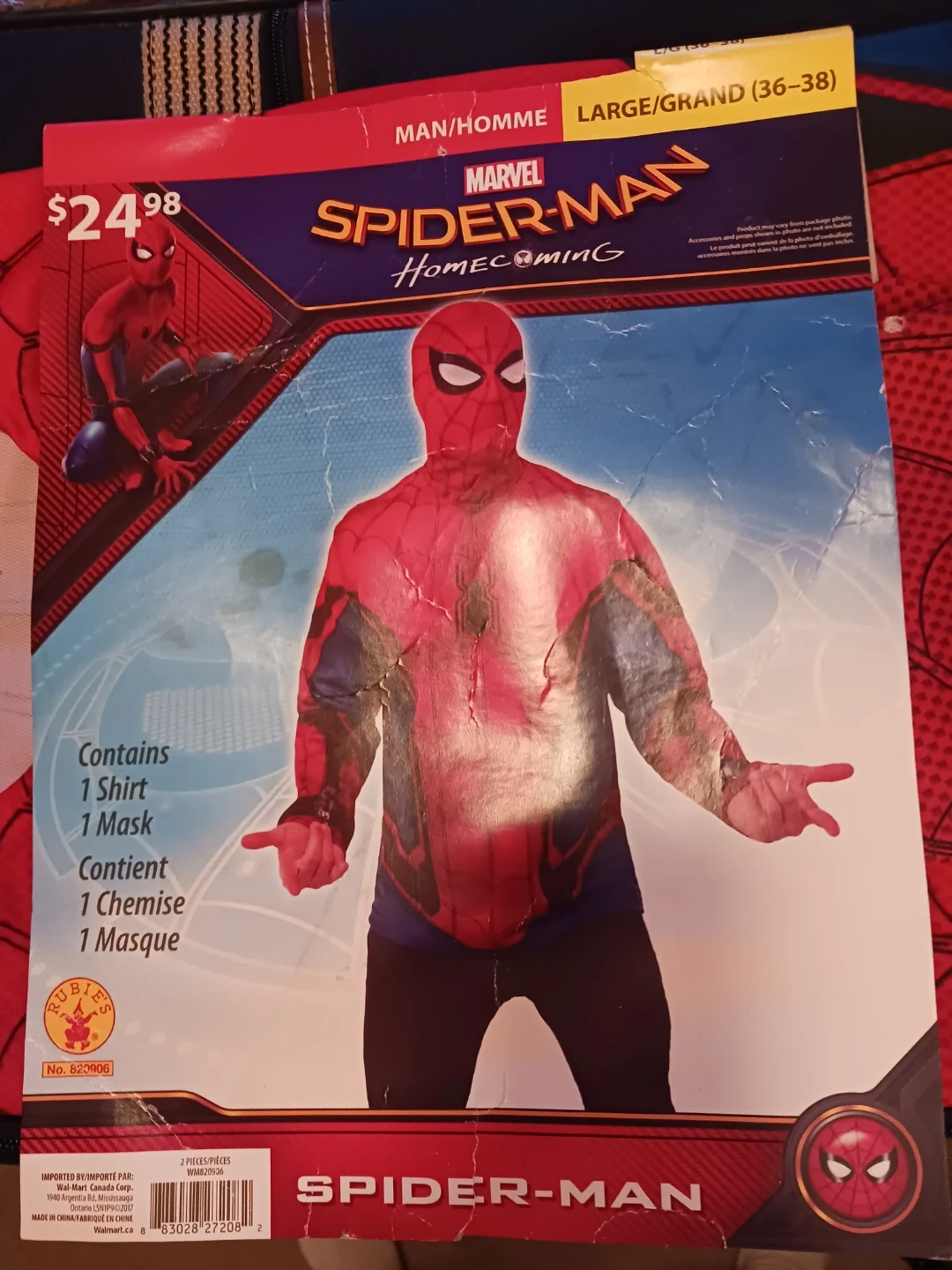 15Selling a Marvel Spider-Man Homecoming costume in size large (36-38)! Includes a shirt and a mask. Originally bought for $24.98. Perfect for dress-up or Halloween! still available cash only