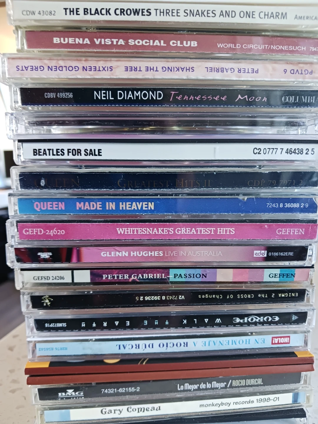 Selling a mixed lot of CD albums. Genres include rock, pop, and world music. Artists include The Black Crowes, Buena Vista Social Club, Peter Gabriel, Neil Diamond, The Beatles, Queen, Whitesnake, Glenn Hughes, Santana, Elton John, U2, and many more! Great for expanding your music collection or finding some new favourites