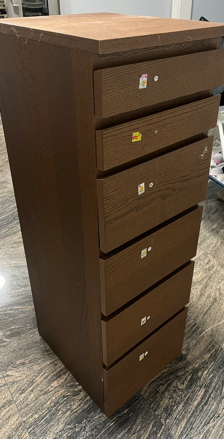 25Selling a brown wooden dresser with a mirror. It features multiple drawers for storage. The second drawer is missing a piece and a bit broken, but overall it's in good condition. Great for adding extra storage to your bedroom or closet!