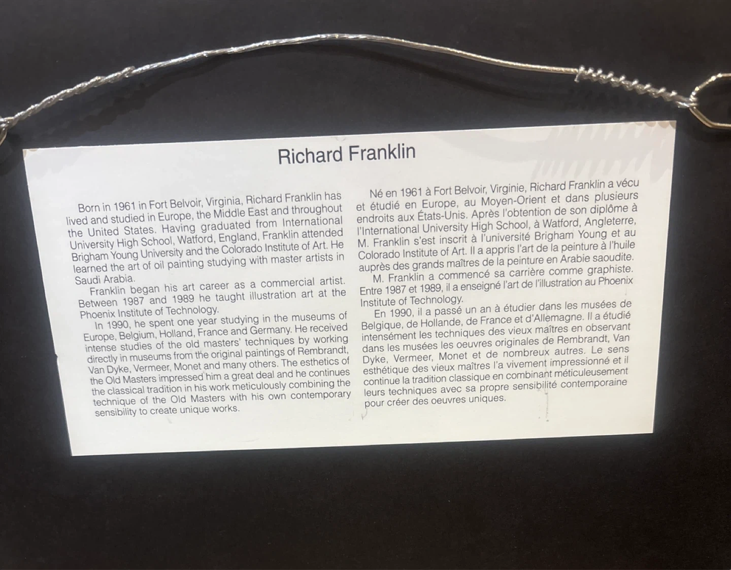 Selling a framed art piece by Richard Franklin. It's in great condition and would be a lovely addition to any home