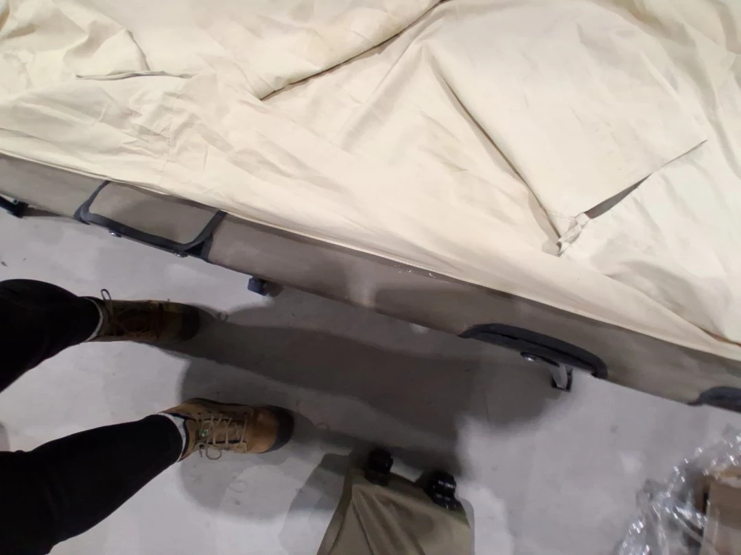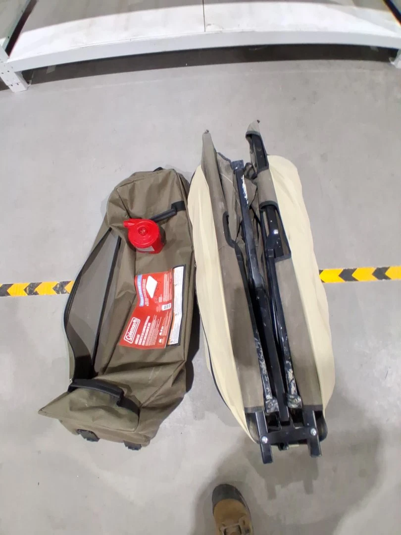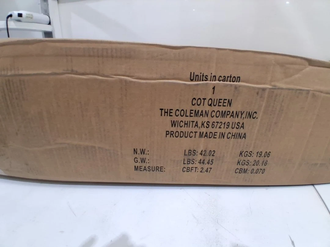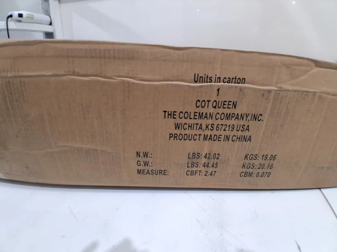 Enjoy a comfortable night's sleep with this Coleman Queen Cot featuring a sturdy frame and an included air mattress. This cot is in used condition, ready for your next camping adventure or accommodating guests at home.