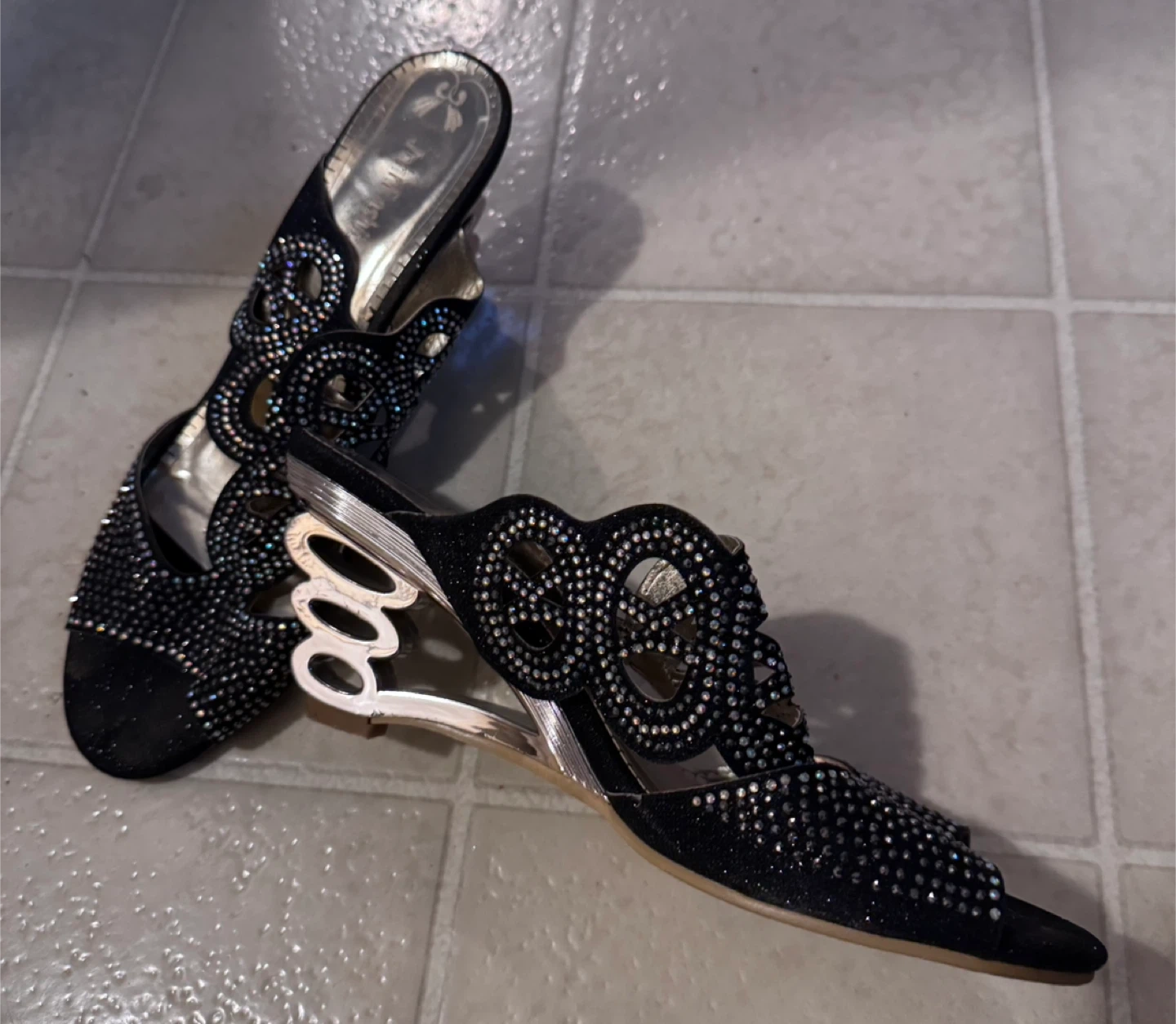 Jony Fashion Black Rhinestone Heels - Size 9