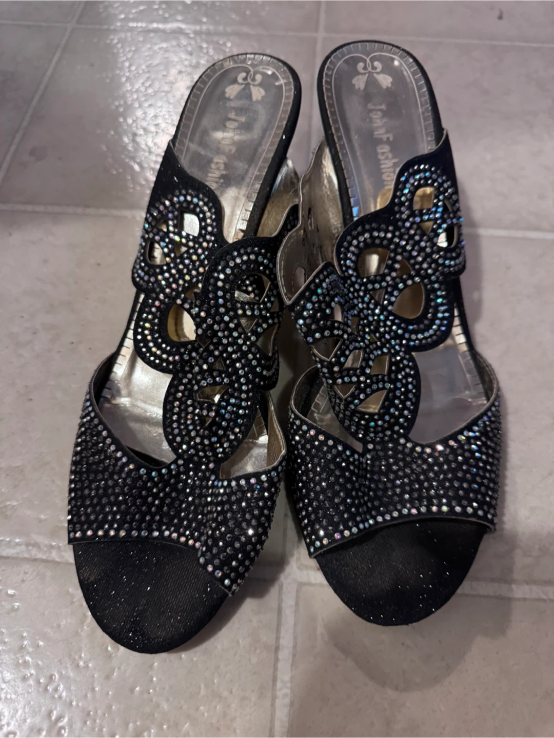 Selling a pair of Jony Fashion heels in size 9. They're black with lots of sparkling rhinestones! Perfect for a night out or a special occasion