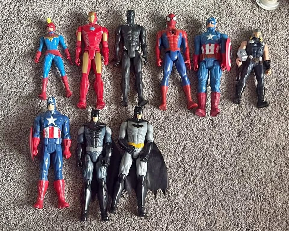 Large 1ft Marvel action figures! Includes Captain Marvel, Iron Man, Spider-Man, Captain Americas and Thor and DC comic characters Batman’s. Figures are in good condition, asking $5 each. In Chilliwack up on promontory