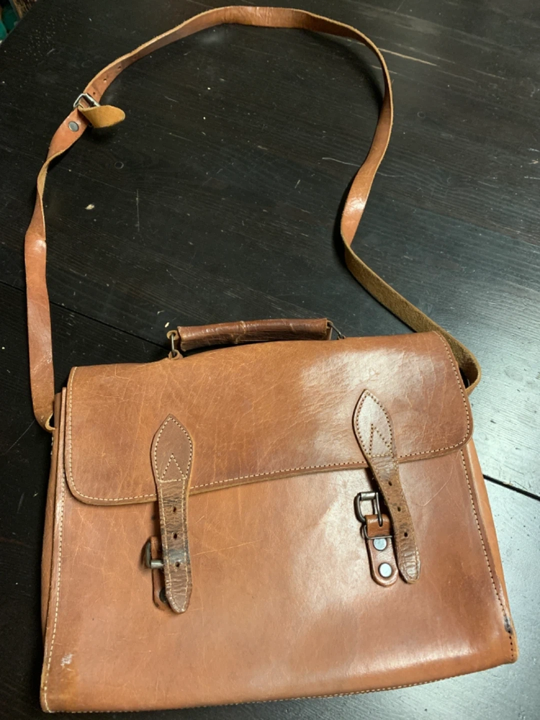 1000+Selling a leather bag (purse alike)in good condition. It features a shoulder strap and buckle closures. This bag is perfect for carrying your essentials around town. Please note that there are some scratches - sign of age, as shown in the pictures