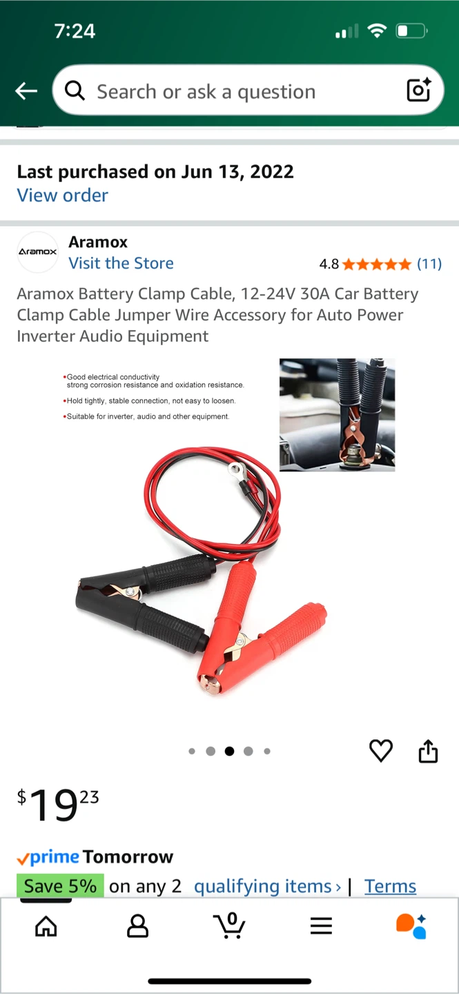 Selling an Aramox Battery Clamp Cable, 12-24V 30A Car Battery Clamp Cable Jumper Wire Accessory for Auto Power Inverter Audio Equipment.