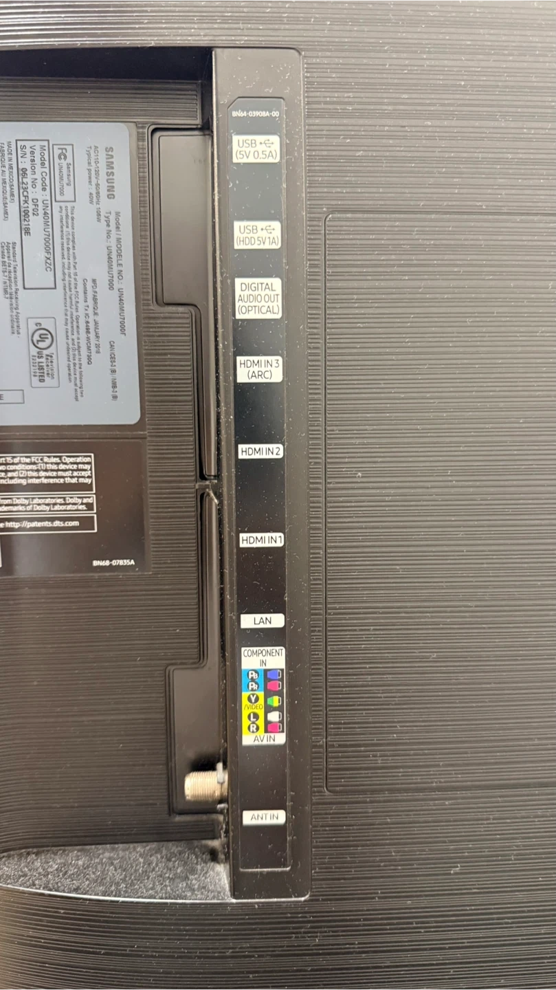 10• Samsung 40" UHD 4K Flat Smart TV • TV stand from Ikea- L:39” H:20”1/2 D 14” • TV remote