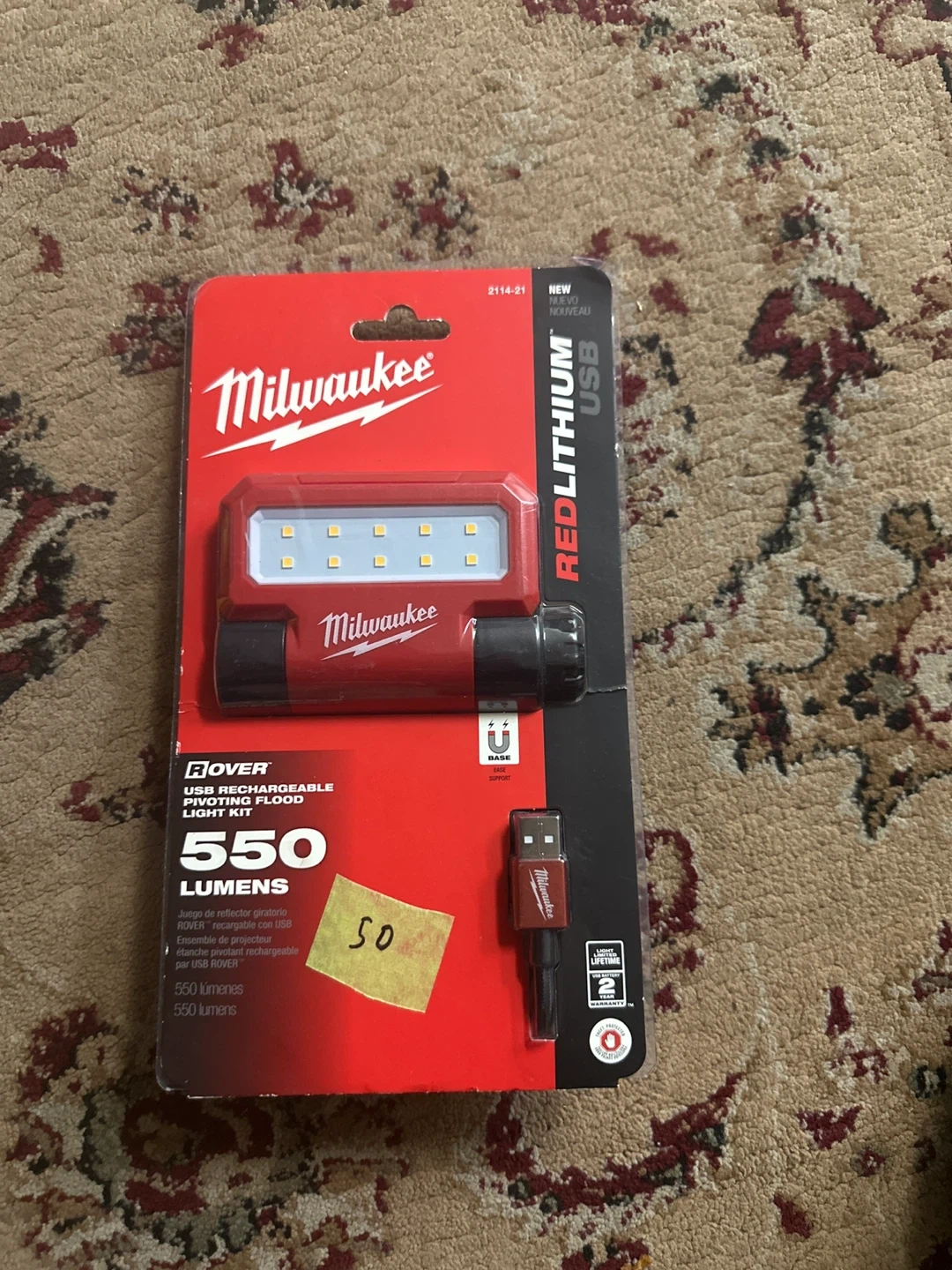 Selling a brand new Milwaukee USB rechargeable pivoting flood light. This light is super handy for all sorts of tasks!