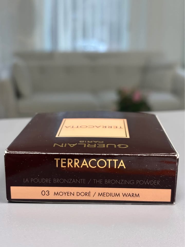 Elevate your glow with the iconic Guerlain Terracotta Bronzing Powder in shade 03 Moyen Doré / Medium Warm.