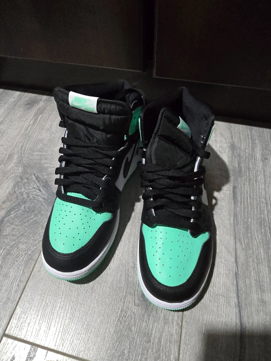 60Selling a pair of Nike Air Jordan 1 High sneakers in the Seafoam Green colourway. These are in great condition and ready for a new home! Size is US Women's 8.
