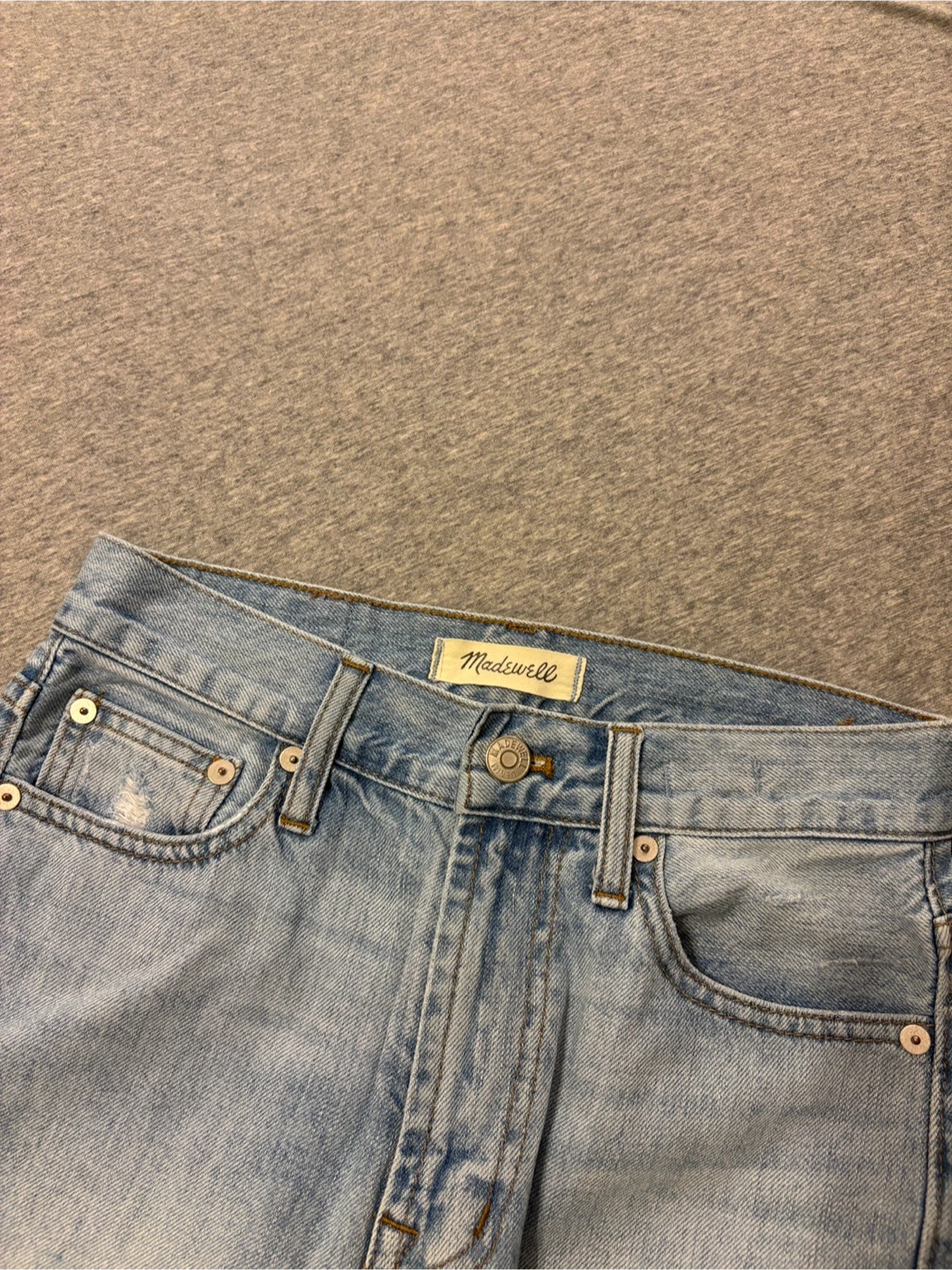 Selling a pair of light wash jeans from Madewell. Waist size 24 and length is petite.