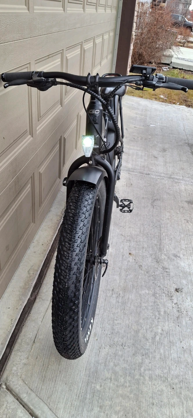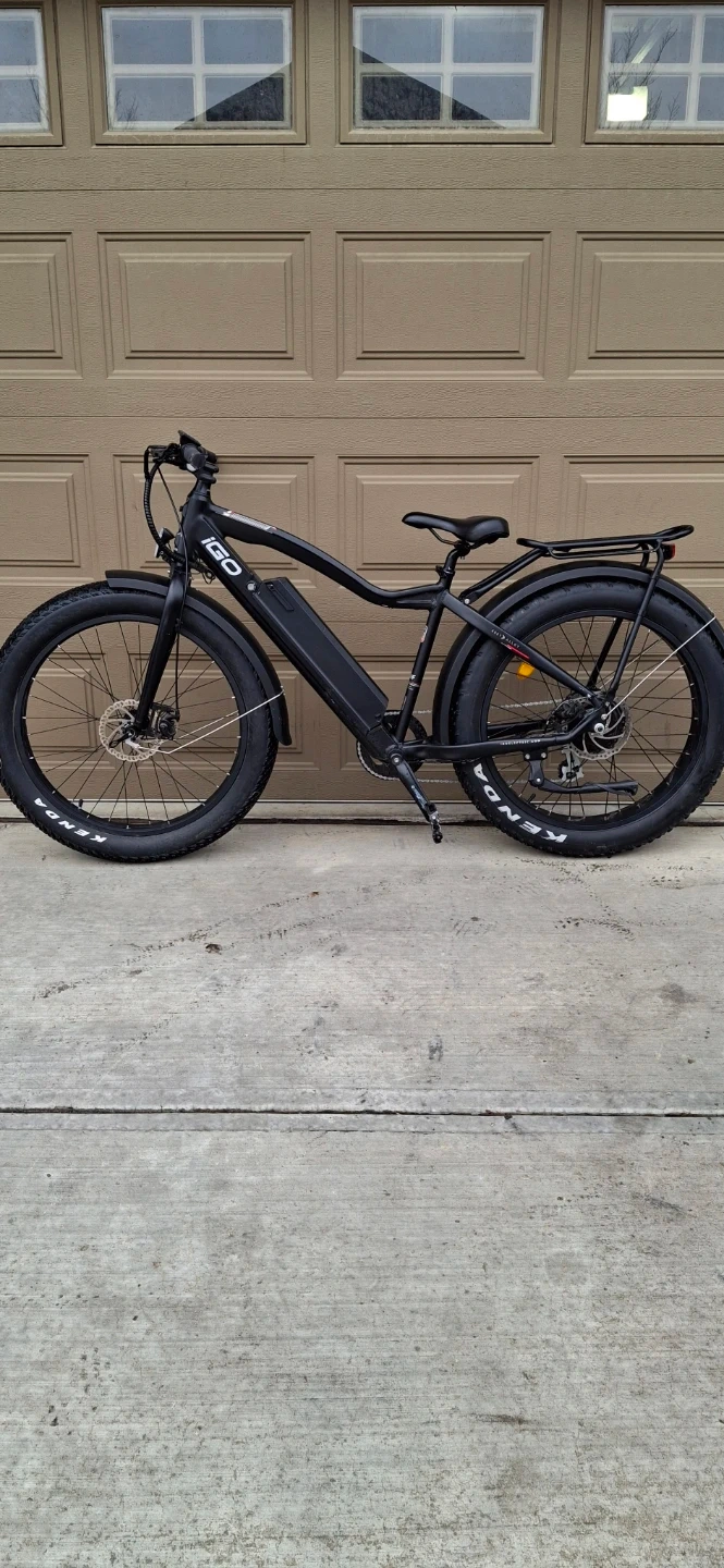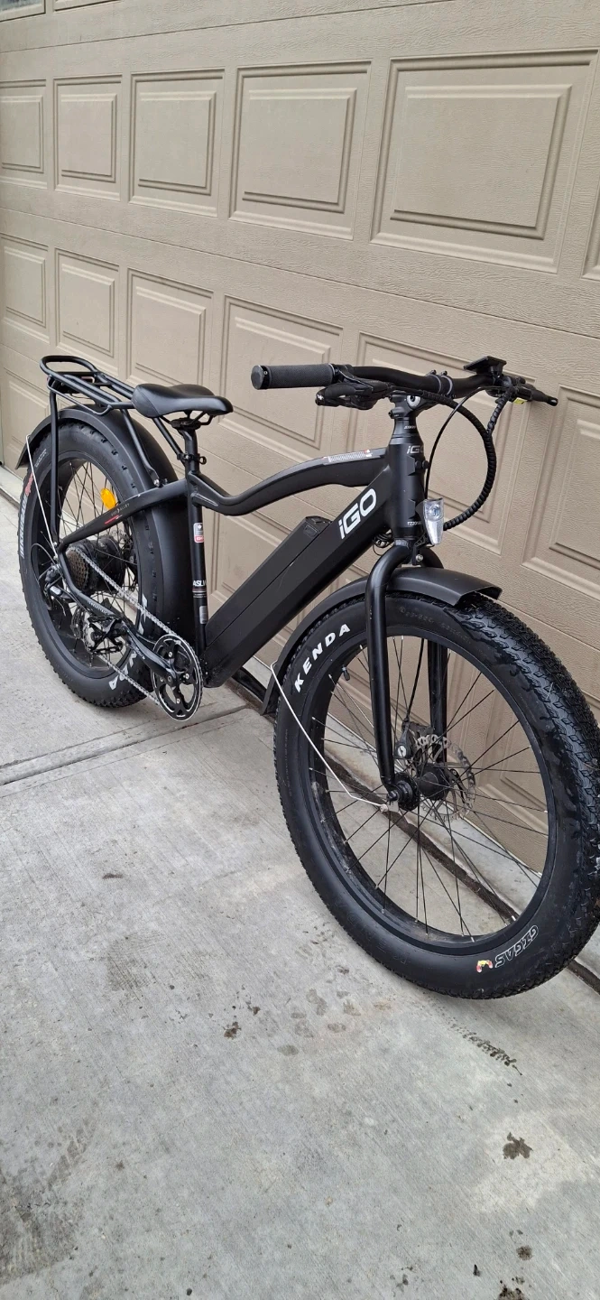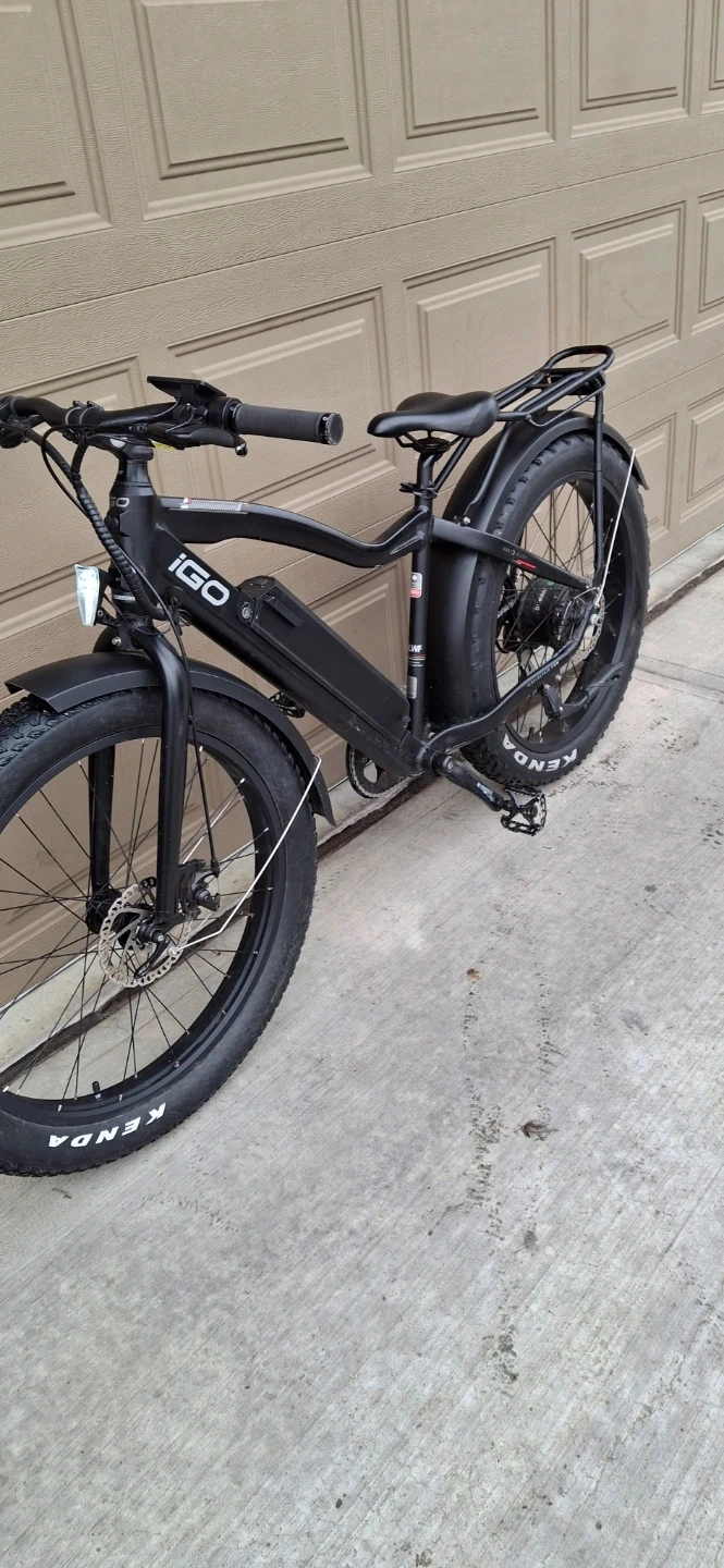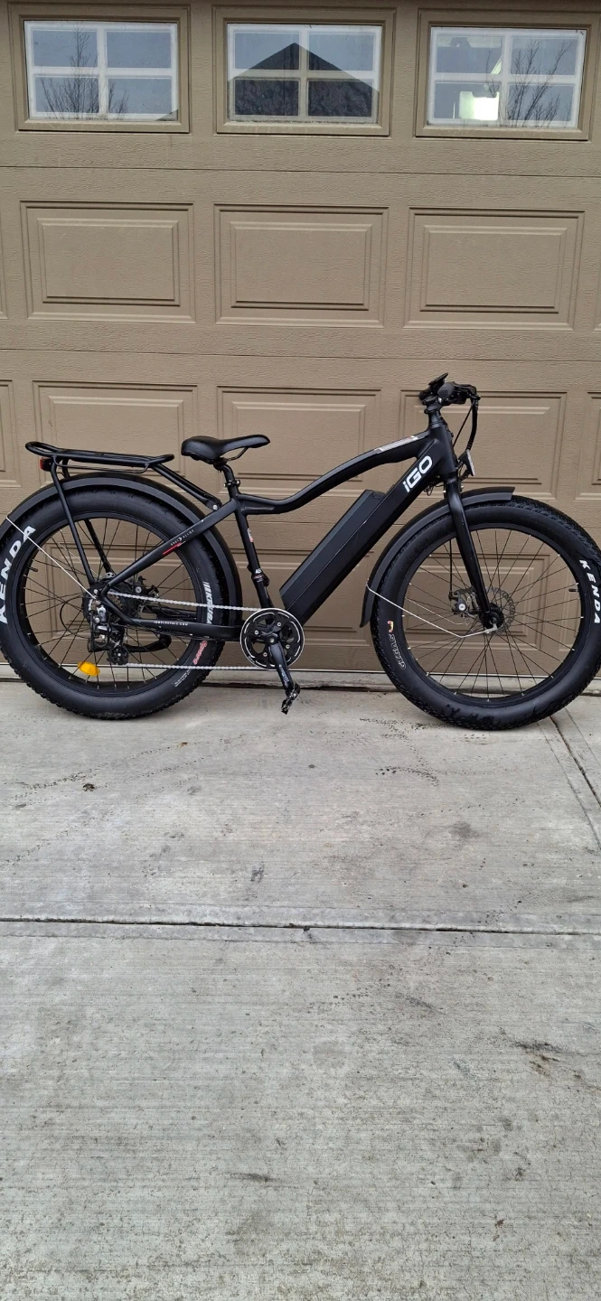 Selling my IGO electric fat bike! It's in great condition and ready for some fun rides. The bike is black and features Kenda tires. Perfect for cruising around town or hitting the trails! Goes 40kmph!