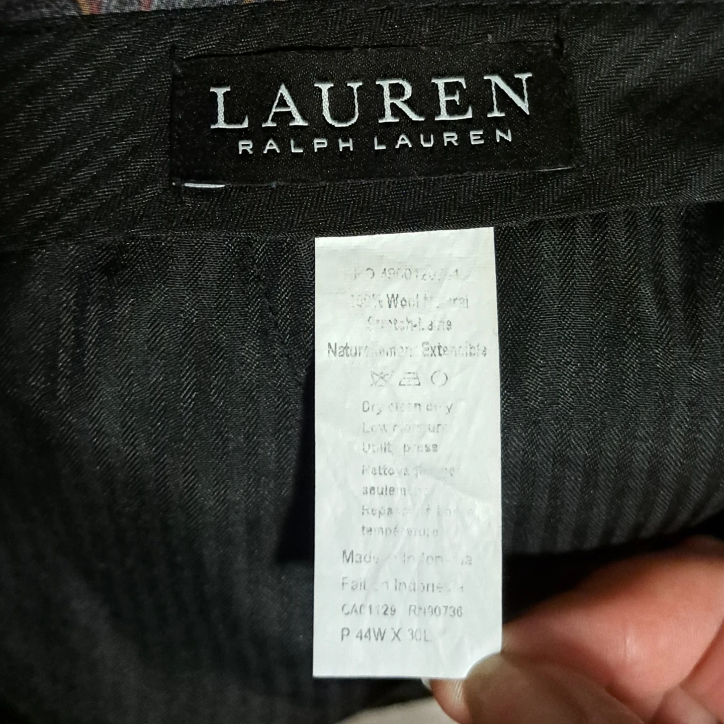 113Grey dress pants from Ralph Lauren 100% wool, dry clean only (did go through the wash once by accident but seem to have survived unscathed). I do not deliver