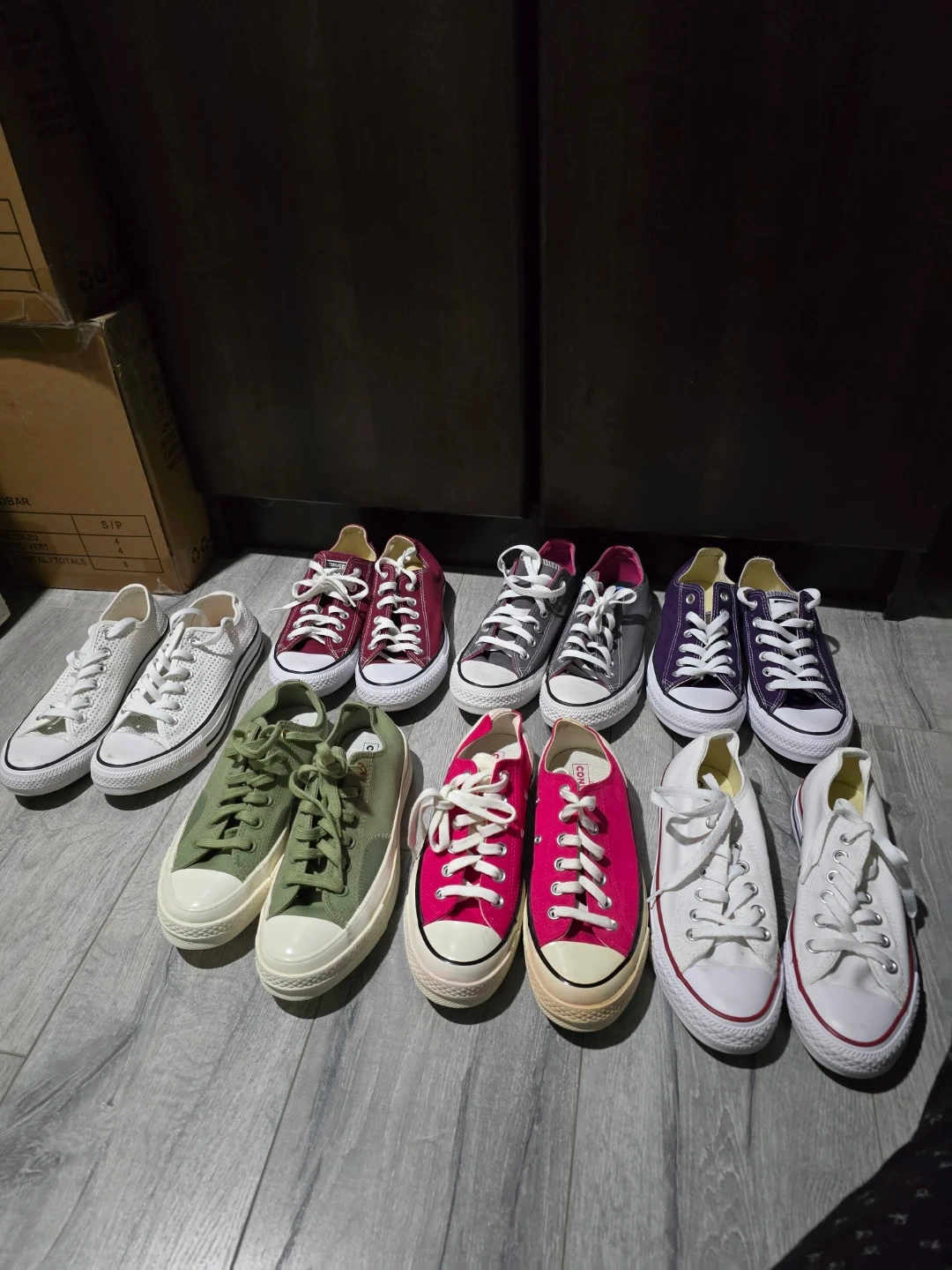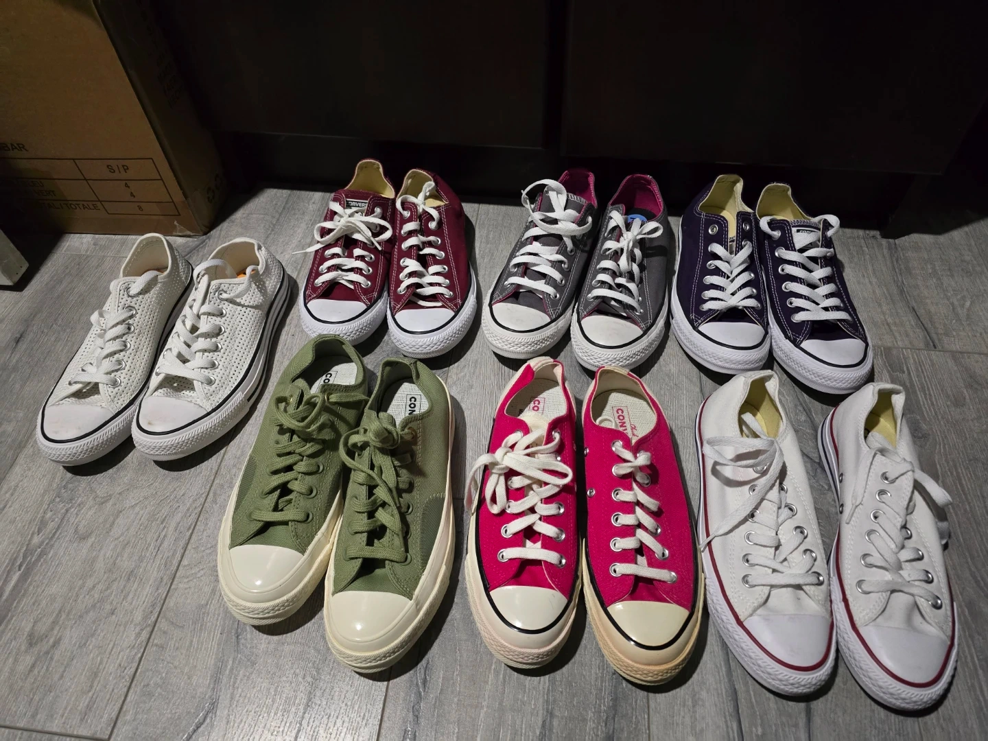 60Selling a collection of Converse Chuck Taylor All Star sneakers in various colours and sizes! These classic sneakers are in great condition and ready for a new home. Perfect for adding a pop of colour to your wardrobe. Check out the photos to see the available colours and sizes.