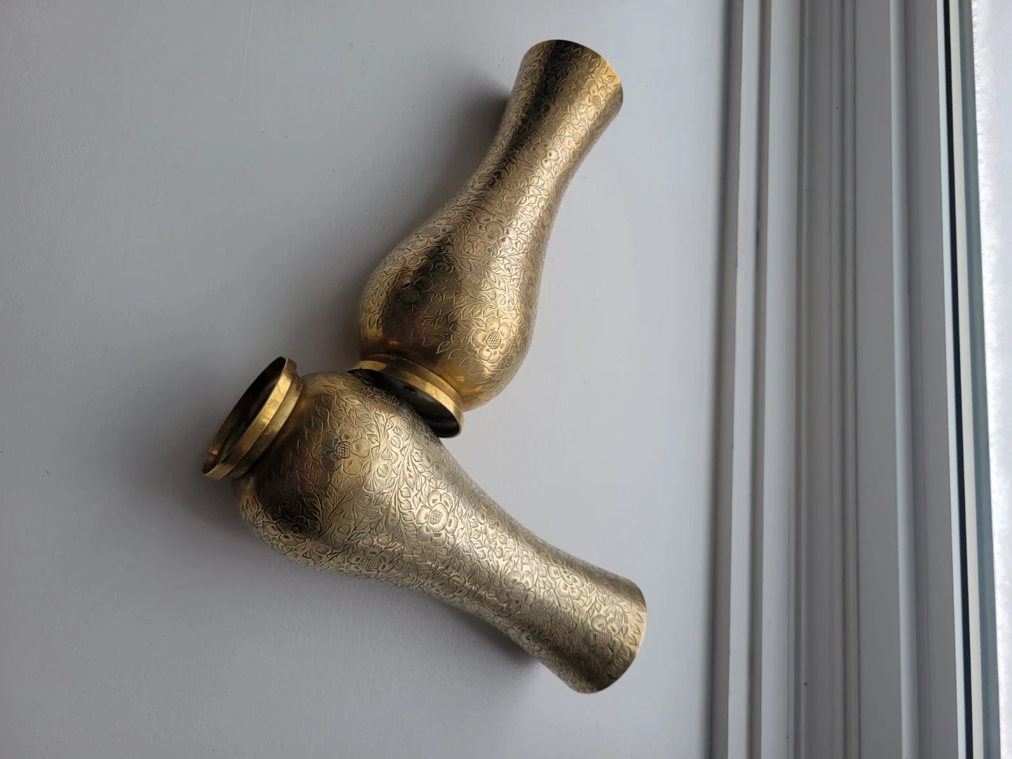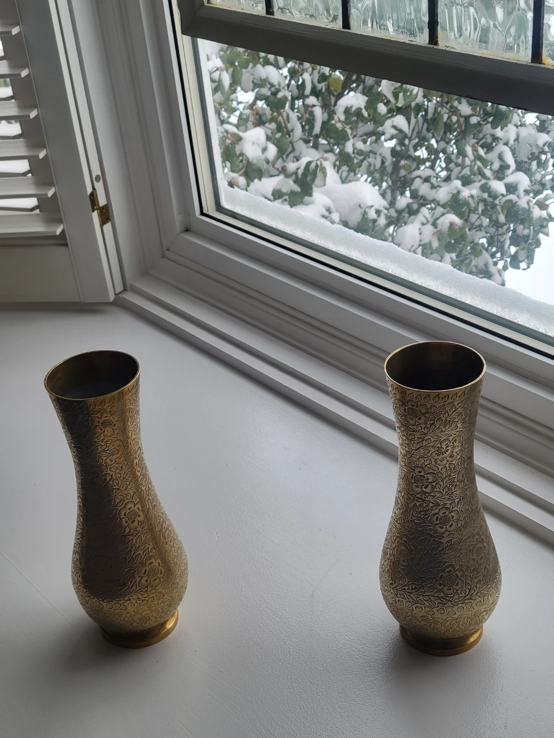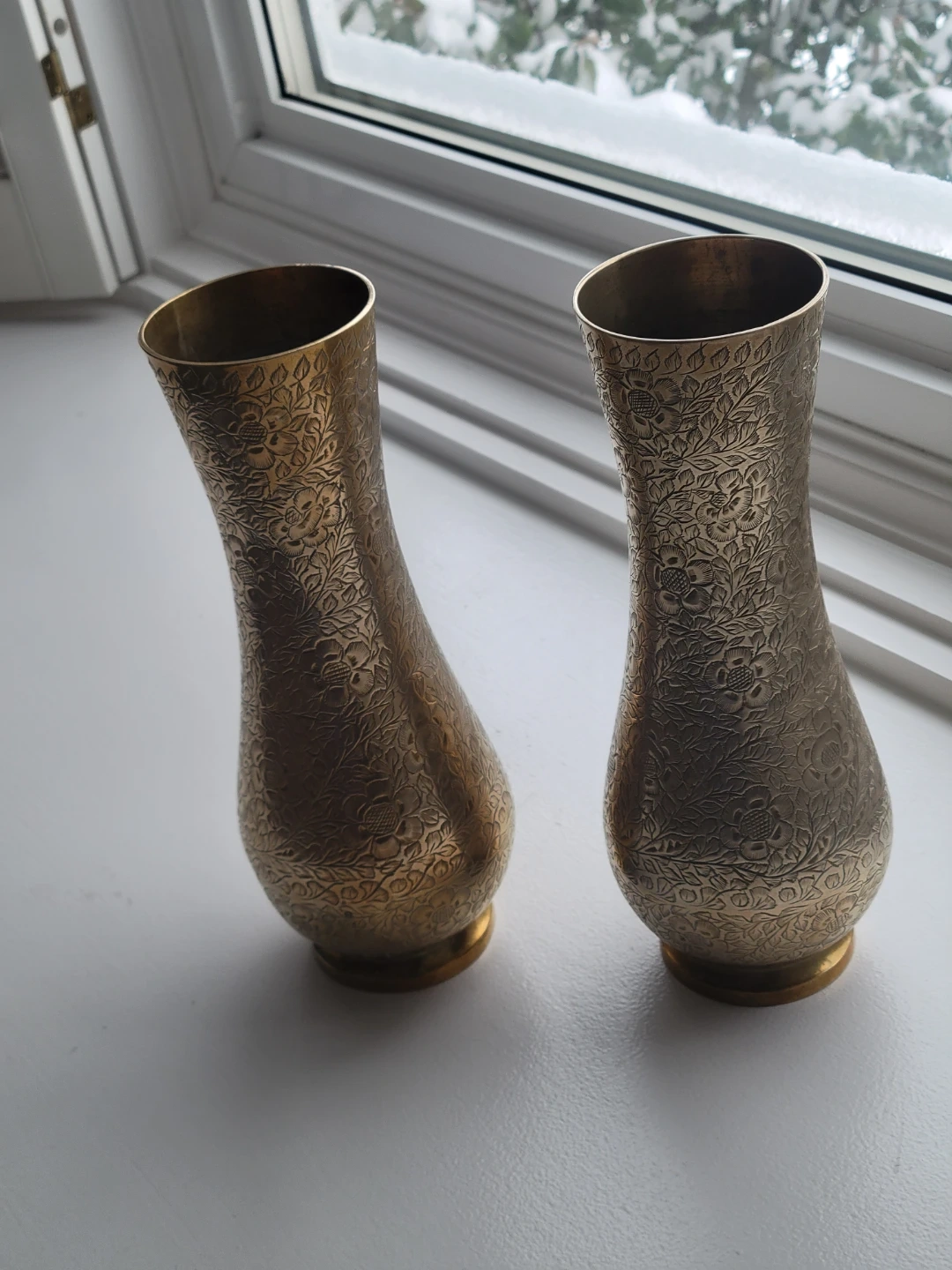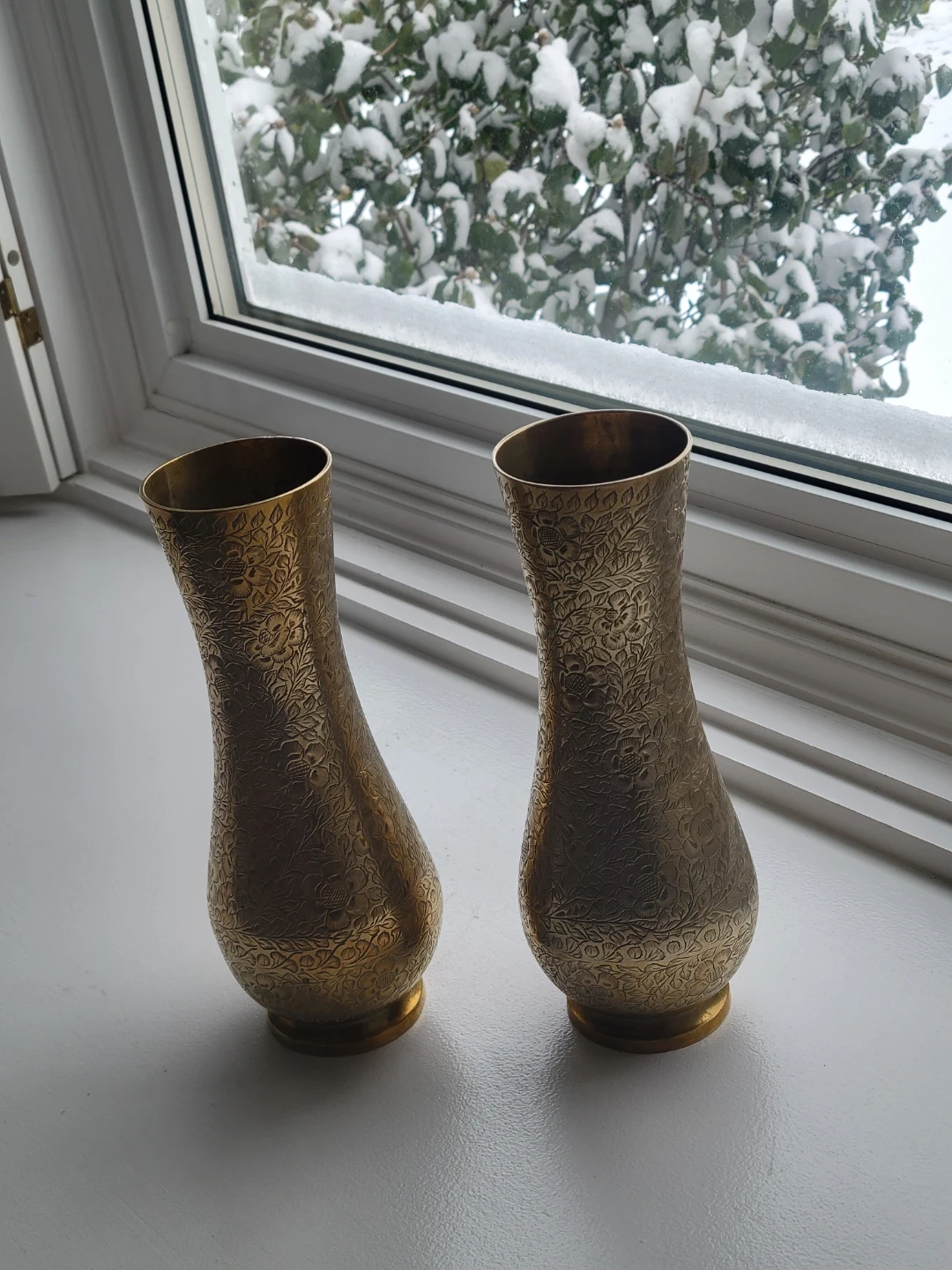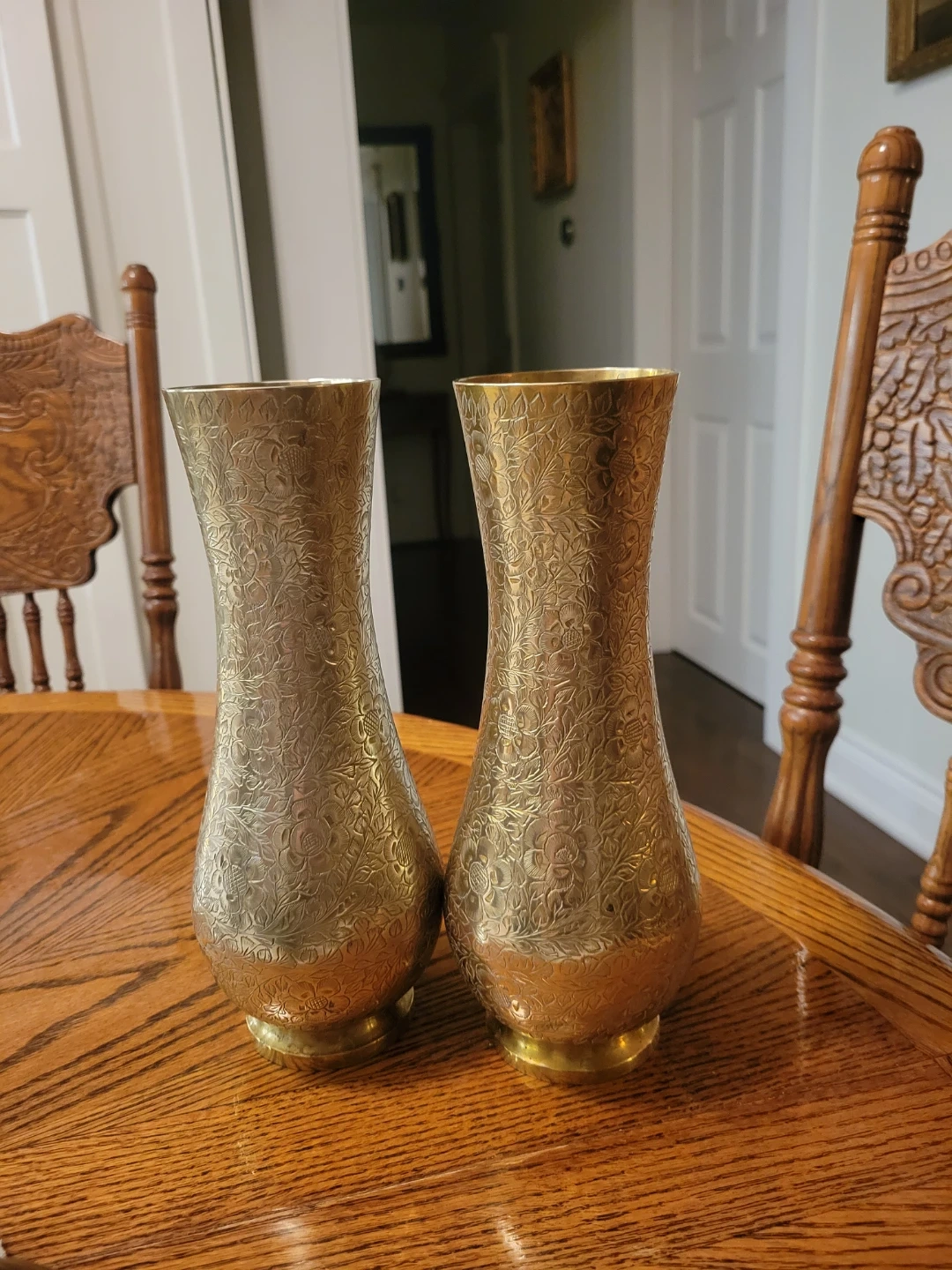Vintage Ornate Brass Etched Floral Vases.Christmas Decor. 10"t
