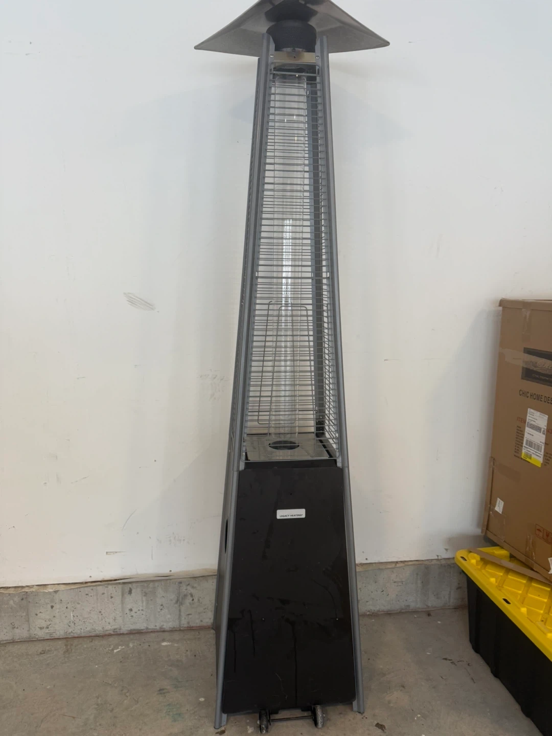 Keep your outdoor space cozy with this pyramid patio heater! It's perfect for extending those summer evenings or enjoying a warm drink on a cool night. It's in great condition and ready to use.