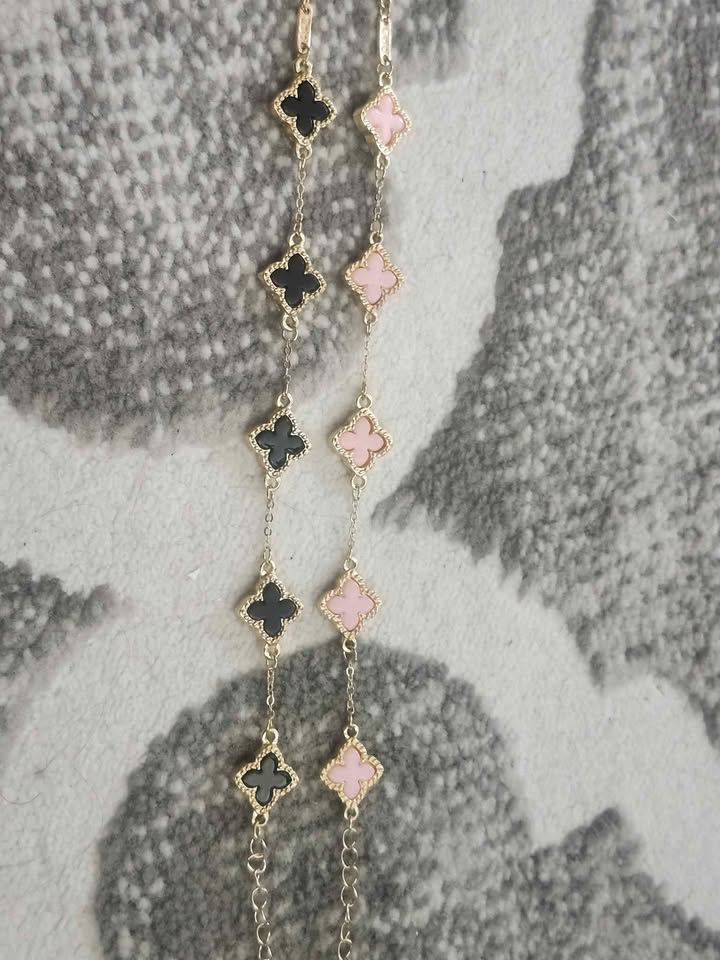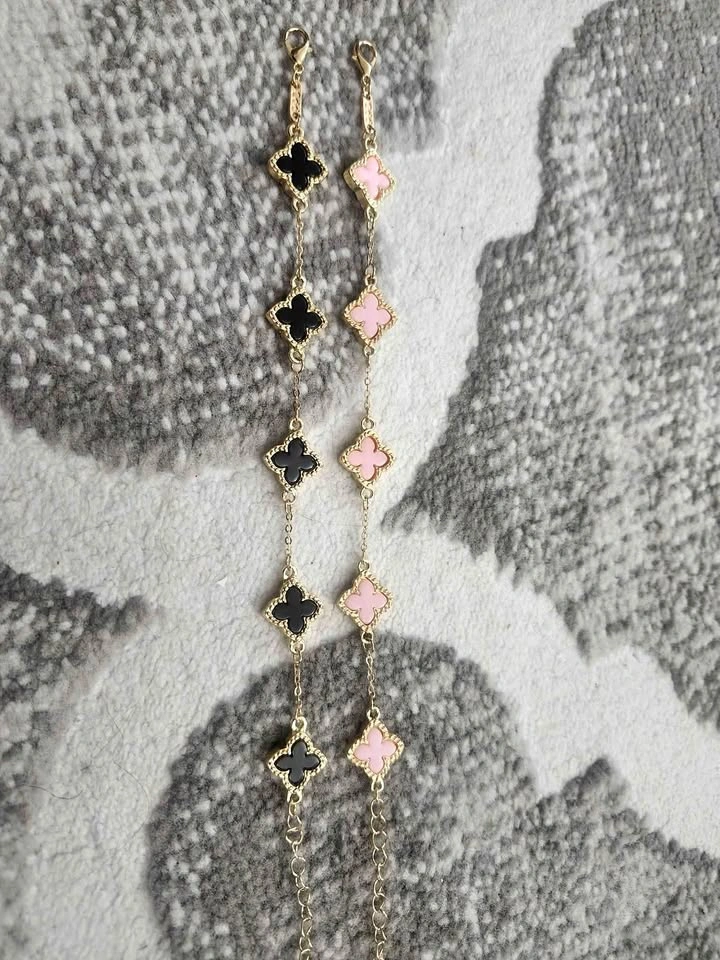 Add a touch of elegance to your look with this stunning clover bracelet! Features 4 clover-shaped charms with a shiny gold outline and your choice of pink or black enamel centers. Perfect for both everyday wear and special occasions. ✨ Details: Condition: Brand new Colors available: Pink (sold) or Black Adjustable chain with secure lobster clasp Elegant and trendy design 💖 Great as a gift or a stylish accessory for yourself! 💵 Price: $5 for each 📍 Pickup: Brock Road & Pickering Parkway (Cash only, SF/PF home)